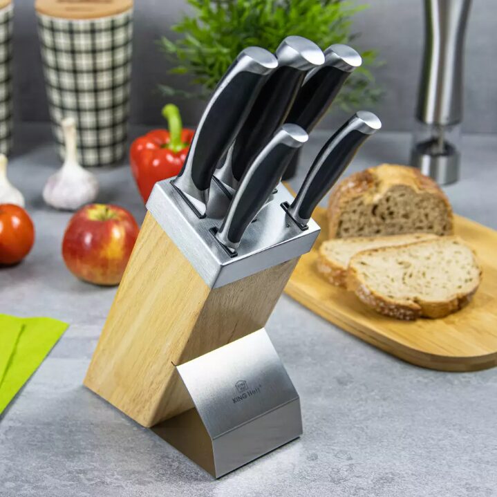 Cuțite grele într-un bloc masiv