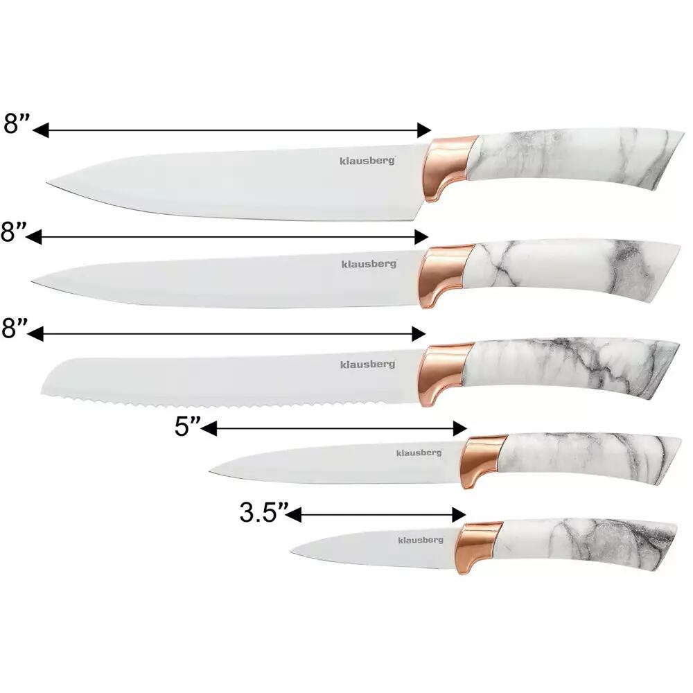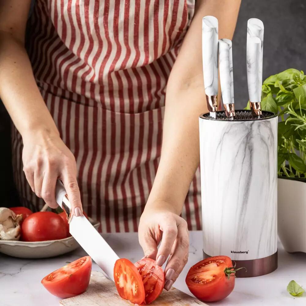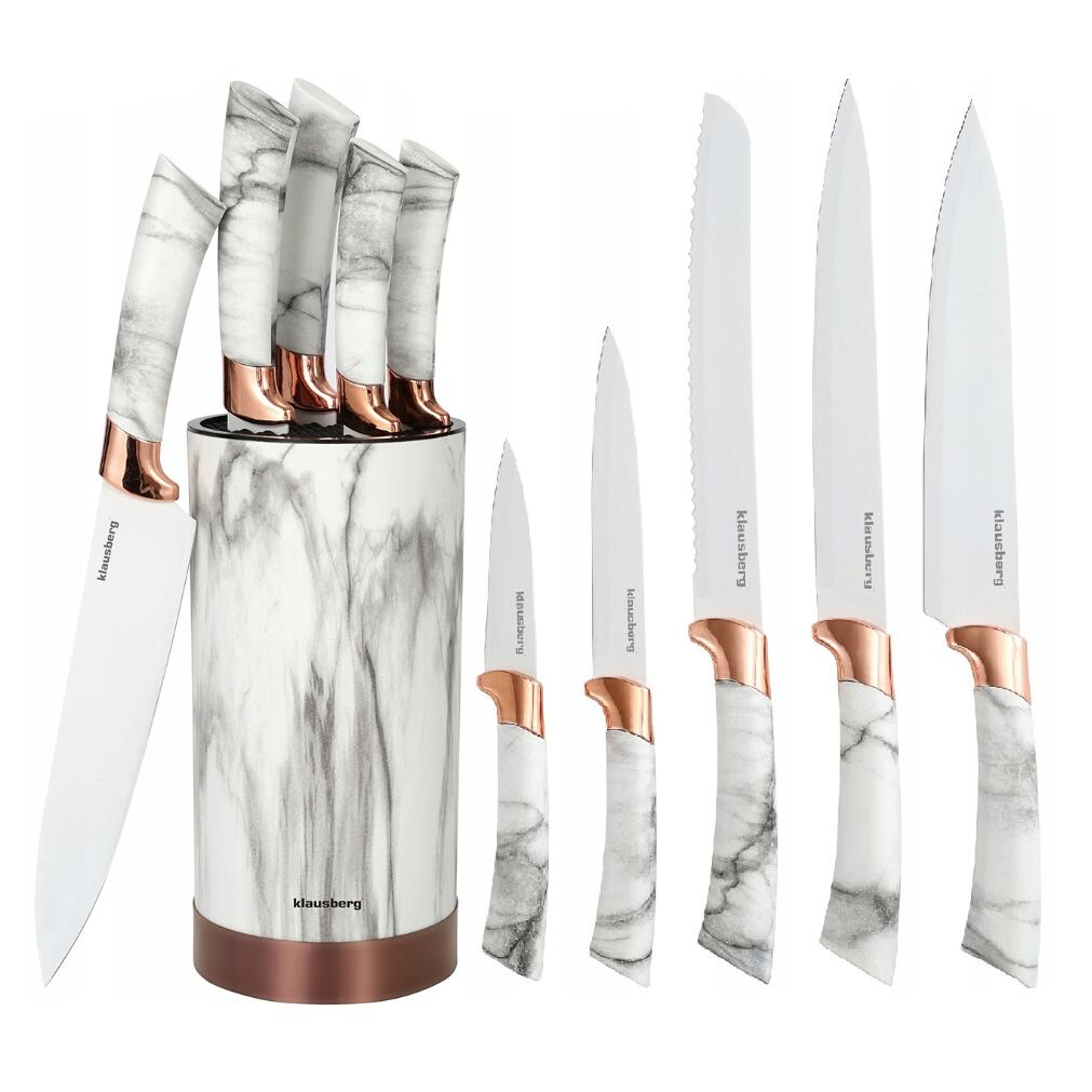 Set cutite din inox cu suport, 6 elemente, alb cu model maro, Kinghoff
