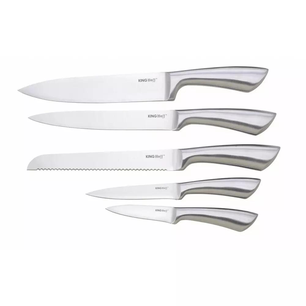 Set de cuțite din 6 bucăți într-un bloc. Conceput pentru porționarea cărnii și peștelui, tăierea pâinii și curățarea și tocarea legumelor.