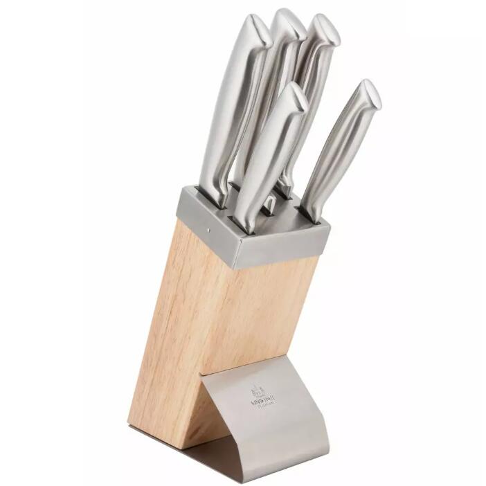 Set cutite Inox, 6 piese, suport patrat din lemn, KingHoff