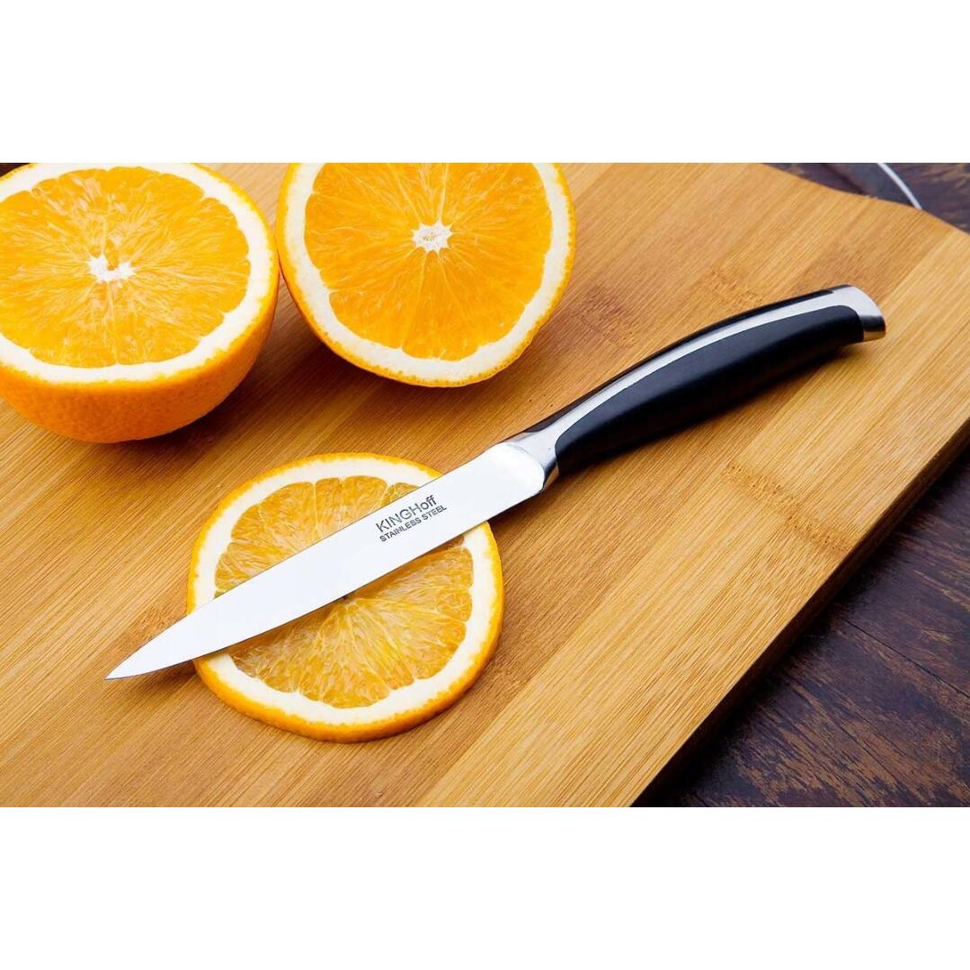 Conceput pentru porționarea cărnii și peștelui, tăierea pâinii și curățarea și tocarea legumelor. Cuțite fabricate din inox Ferrinox 18/10 de înaltă calitate, cu conținut ridicat de carbon 1.4028/X30Cr13. O caracteristică importantă a acestui oțel este faptul că este rezistent la toate tipurile de zgârieturi se caracterizează printr-o rezistență crescută la abraziune și coroziune. Lama este realizată din oțel crom-molibden, excepțional de dur, rezistent la deformare, susceptibil la ascuțire. Cuțitul a fost realizat conform artei tradiționale dintr-o singură bucată de oțel. Mânerele sunt ergonomice, umplute cu masă de bachelit și vă permit să le țineți în siguranță fără a aluneca.