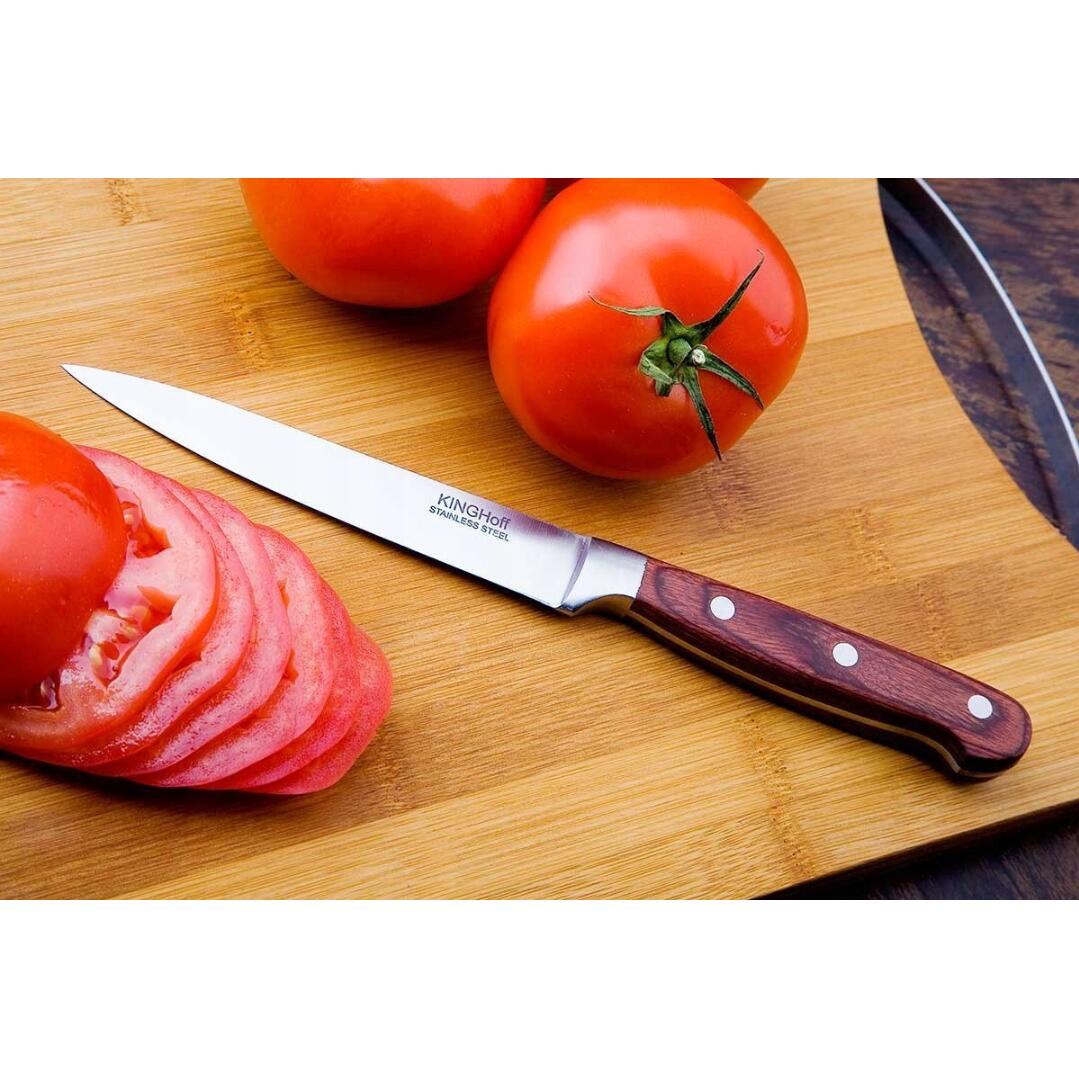 Set cutite Inox, 6 piese, suport patrat din lemn, mâner Pakka maro, KingHoff