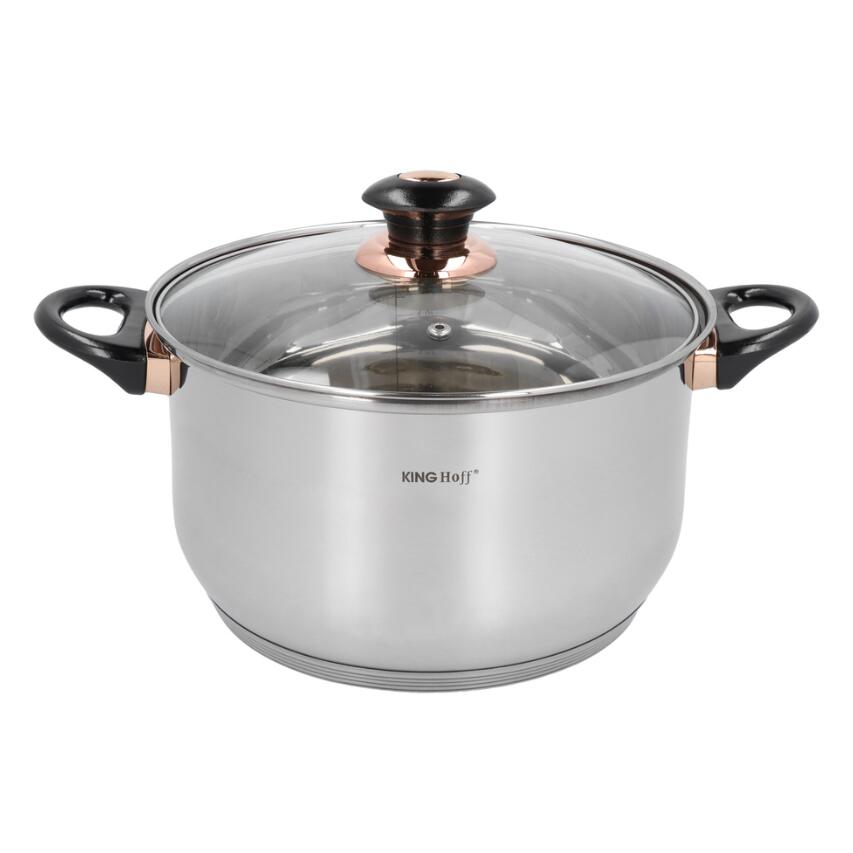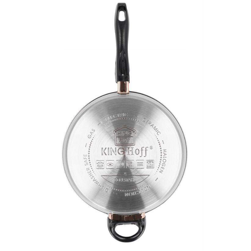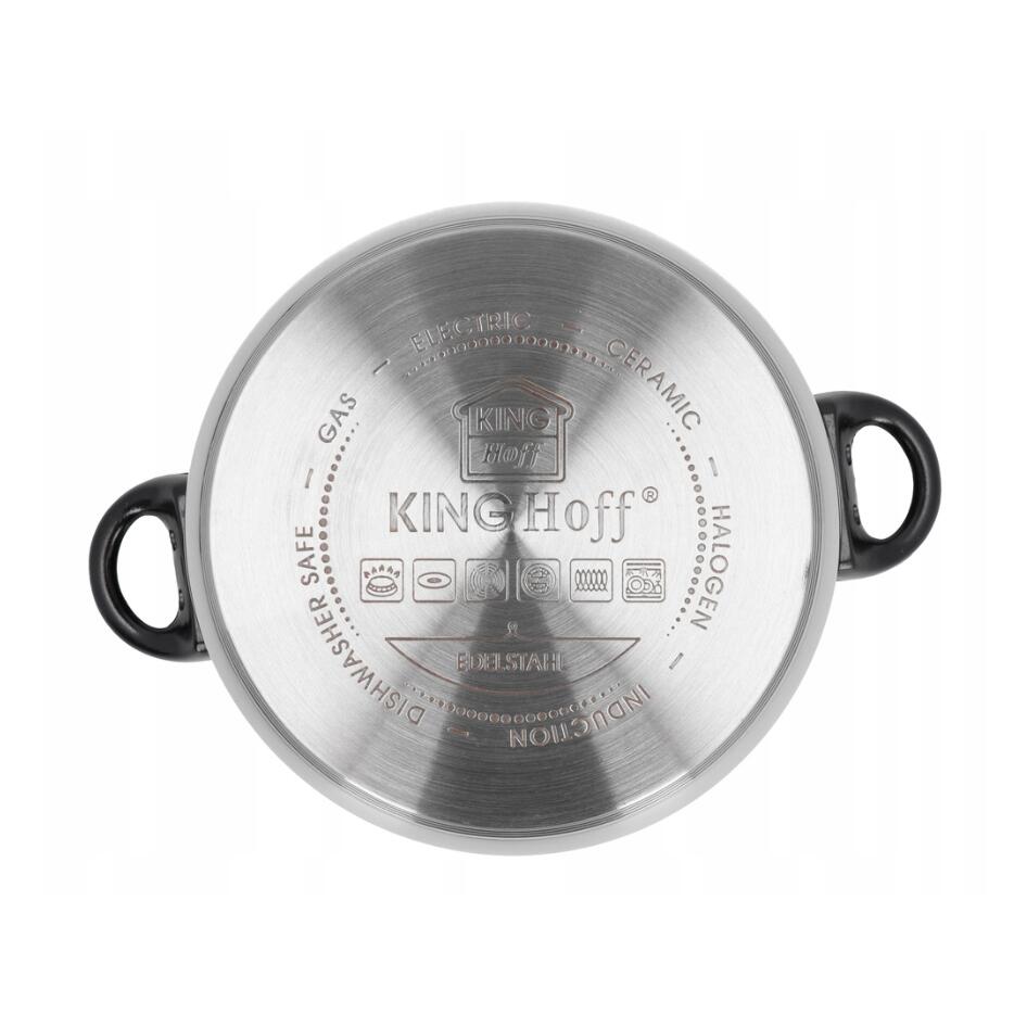 Set de 12 elemente din inox cu capac 16 cm, 18cm, 20cm, 24cm, plus o tigaie marmorata cu capac 24cm, gri, Kinghoff