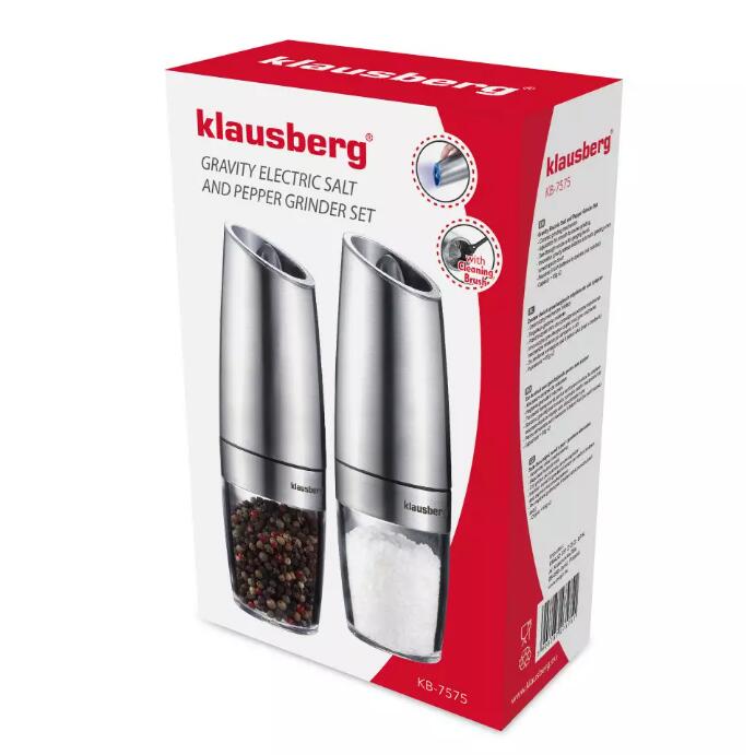 Un set de rasnite electrice elegante, pentru măcinarea piperului, sării și a altor condimente, cu un aspect de designer și o formă inovatoare care asigură confortul în utilizare. Rasnitoarele sunt la indemana, functionale si usor de folosit. Comoditatea utilizării este garantată de un sistem inovator care este activat atunci când este înclinat. Va face ca aroma proaspătă a condimentelor să umple casa și să confere preparatelor o aromă unică. Va completa perfect echipamentul oricărei bucătării.