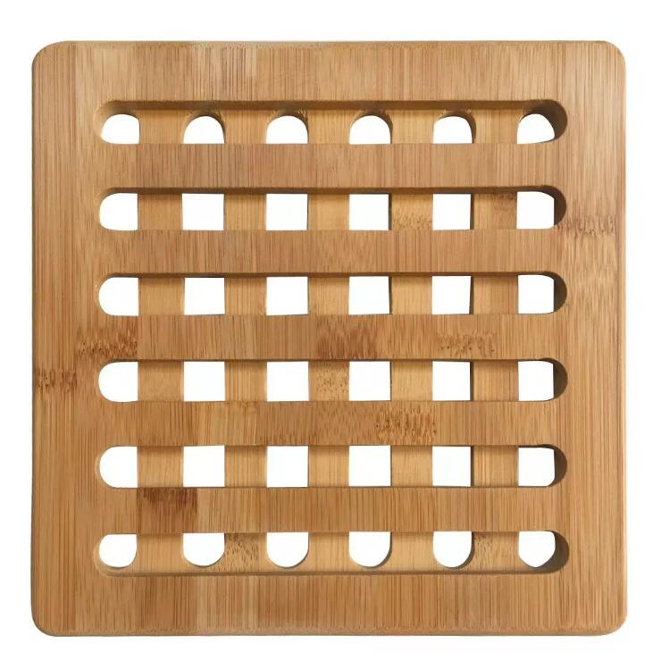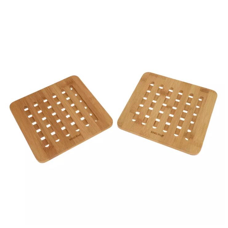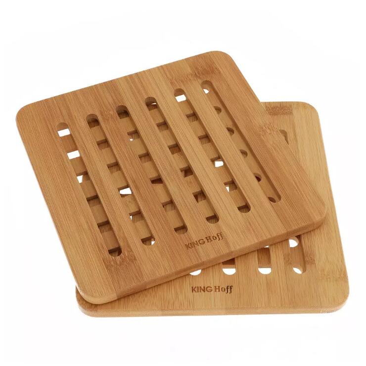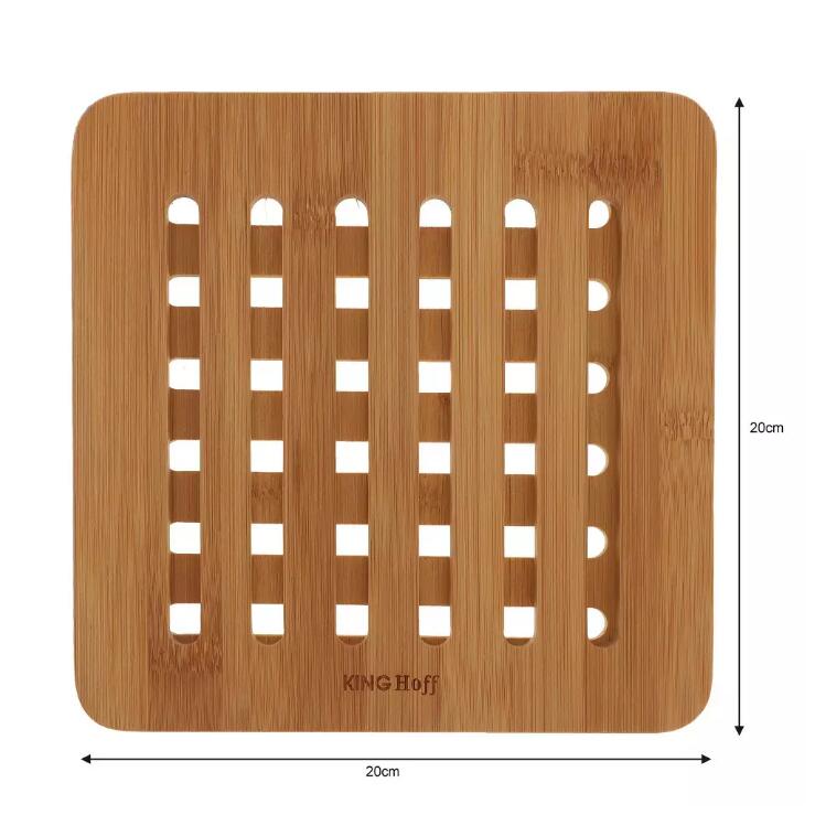 Set de 2 suporti pentru oale fierbinti, din bambus, patrat, 20x20x1,2 cm Kinghoff