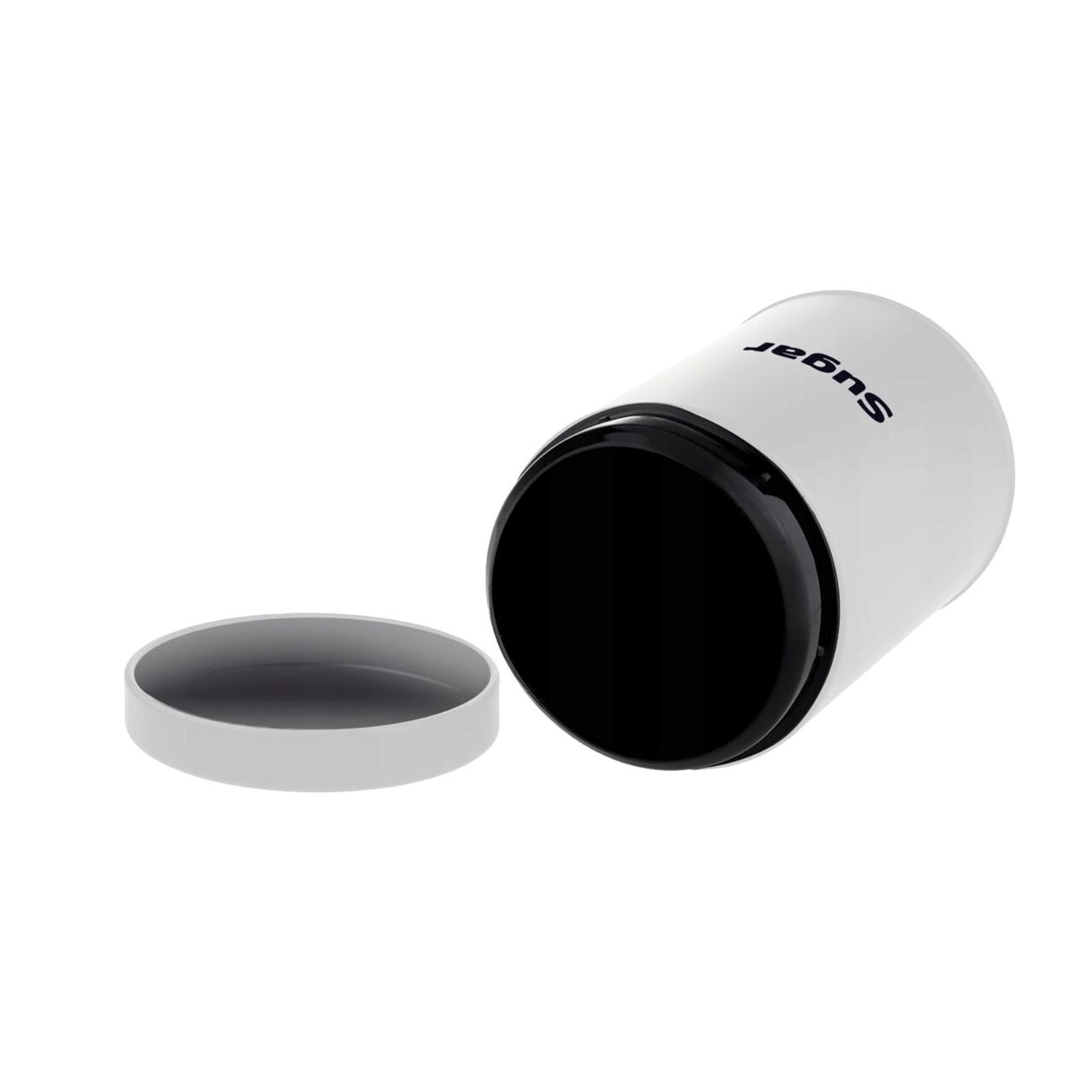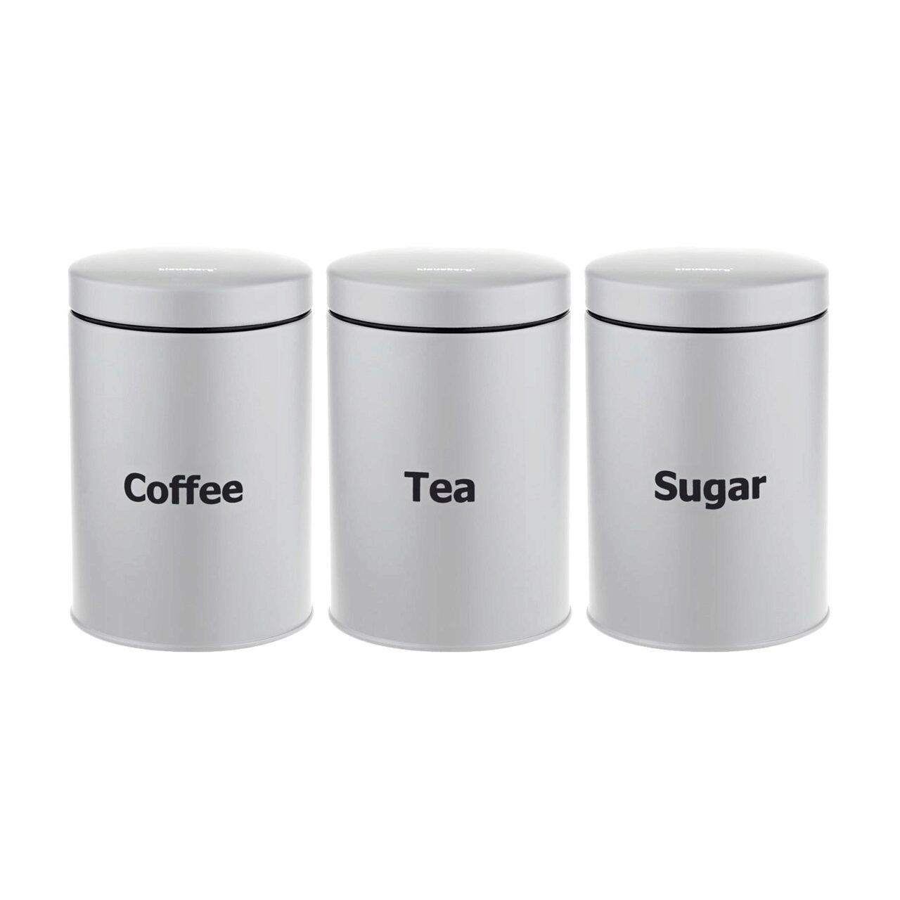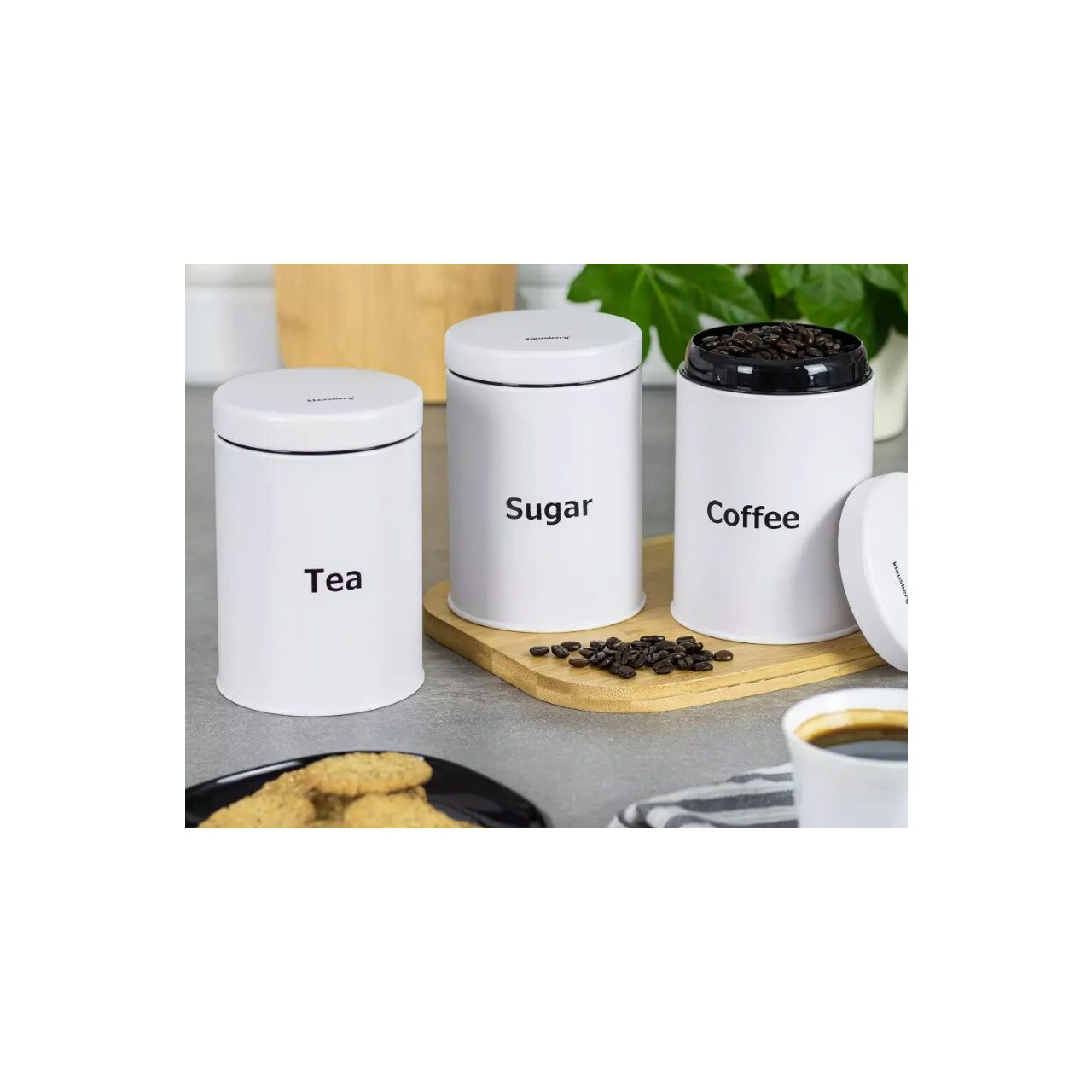 - Inscripții negre Zahăr, Cafea, Ceai pe recipiente.