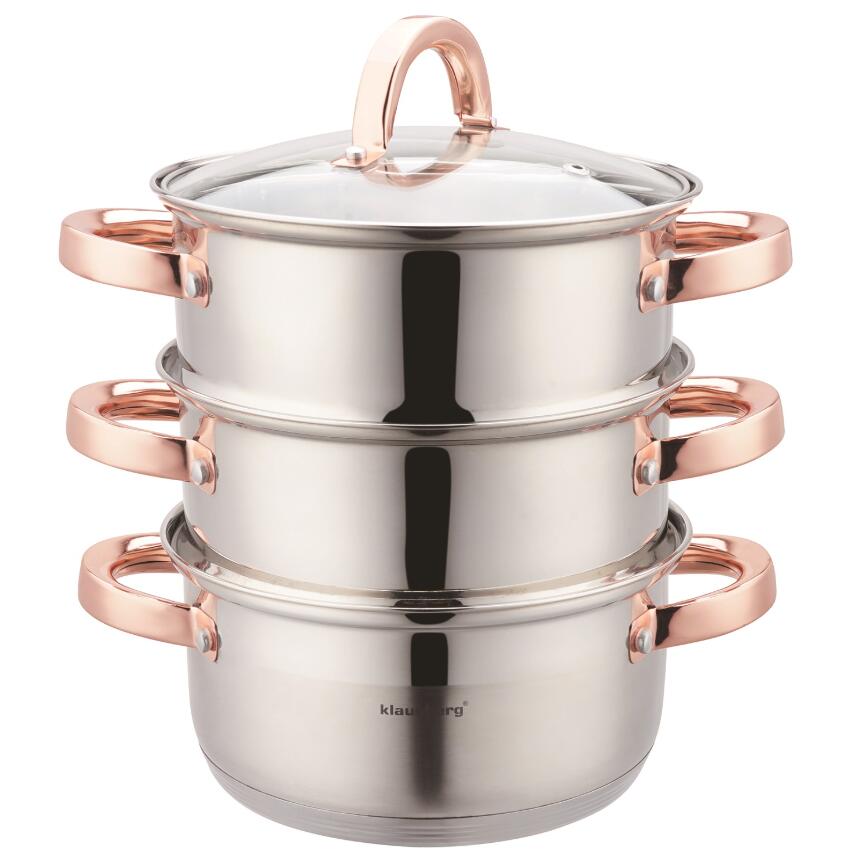 Setul de oale pentru abur este realizat din oțel inoxidabil de înaltă calitate.
