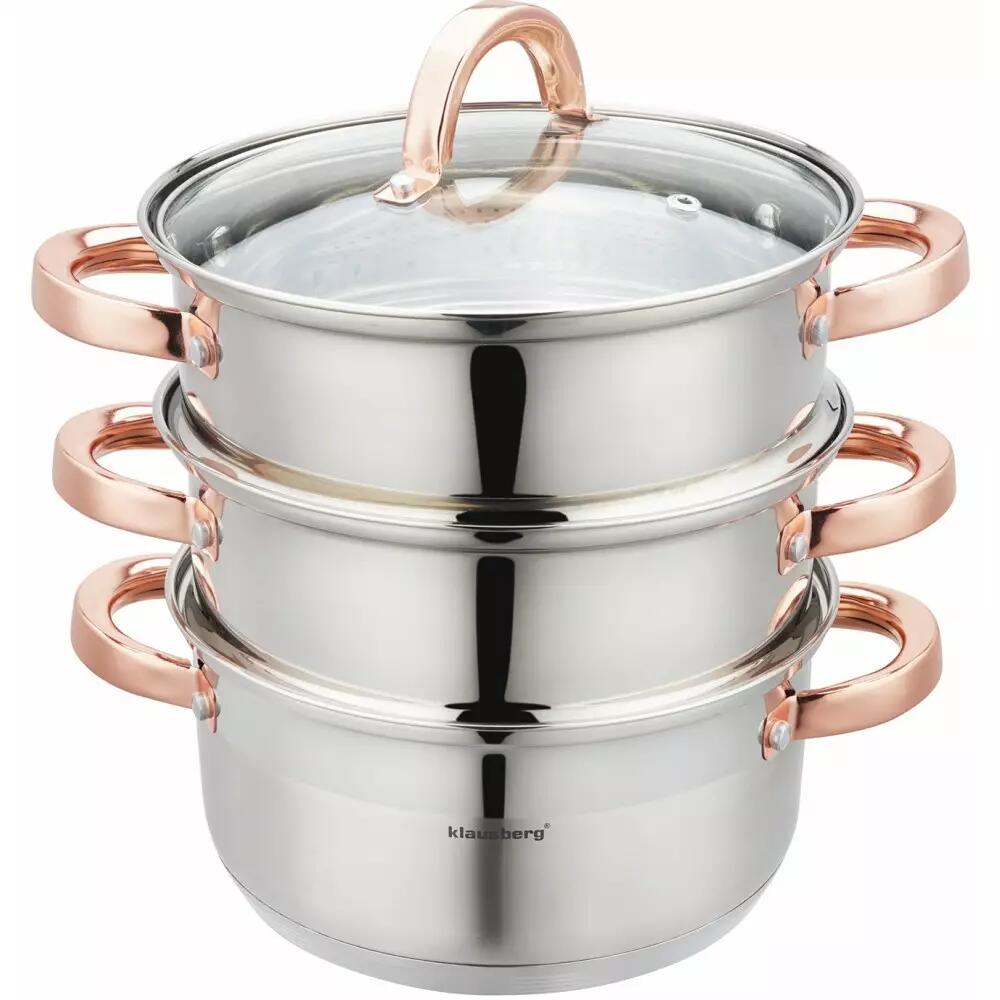 Setul de oale pentru abur este realizat din oțel inoxidabil de înaltă calitate.