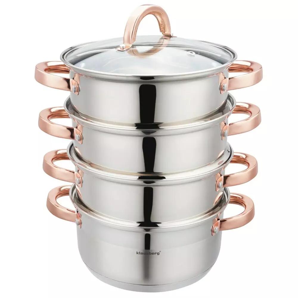 Setul de oale pentru abur este realizat din oțel inoxidabil de înaltă calitate.