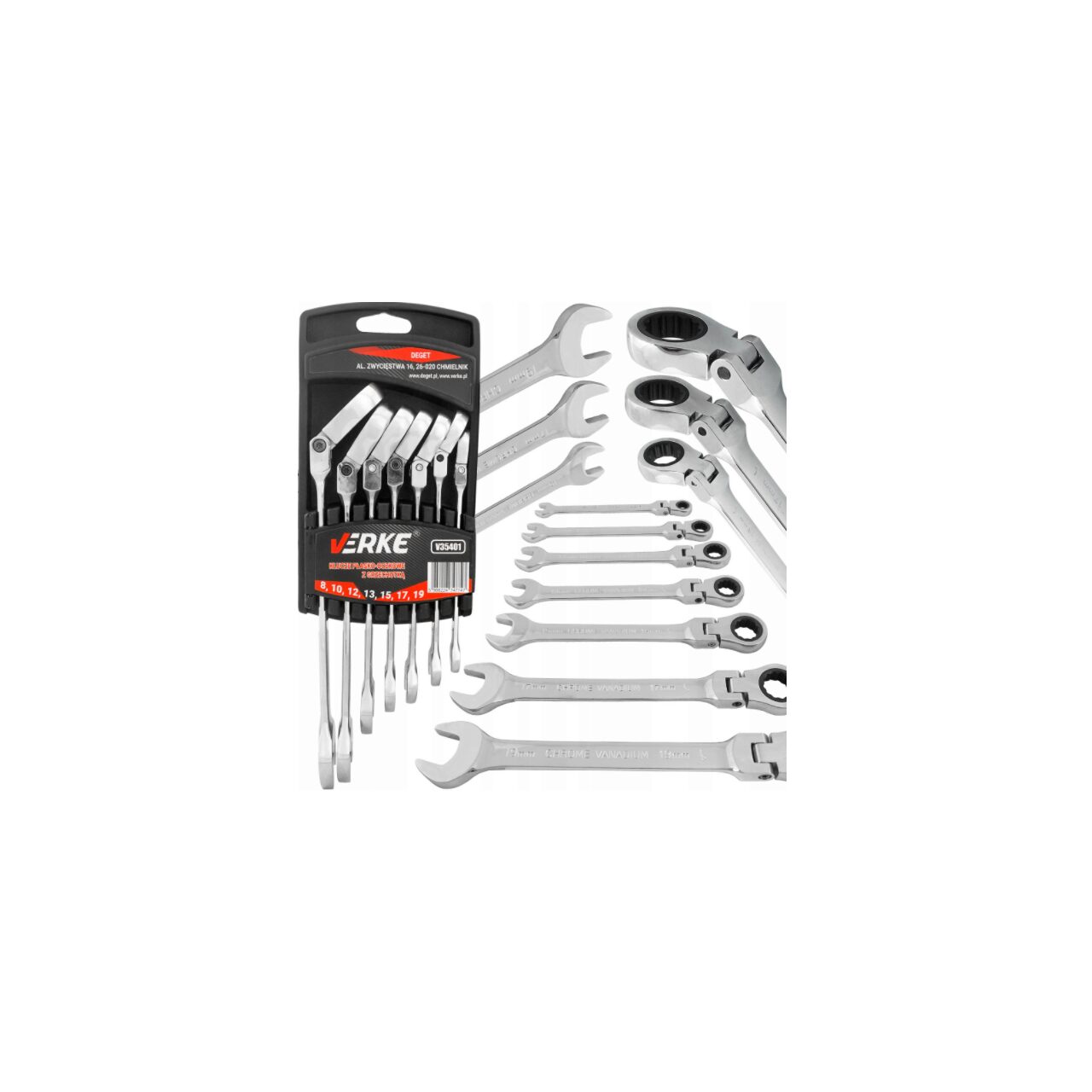 Set de 7 chei pliante cu clichet: Dimensiune cheie: 8mm, 10mm, 12mm, 13mm, 15mm, 17mm, 19mm