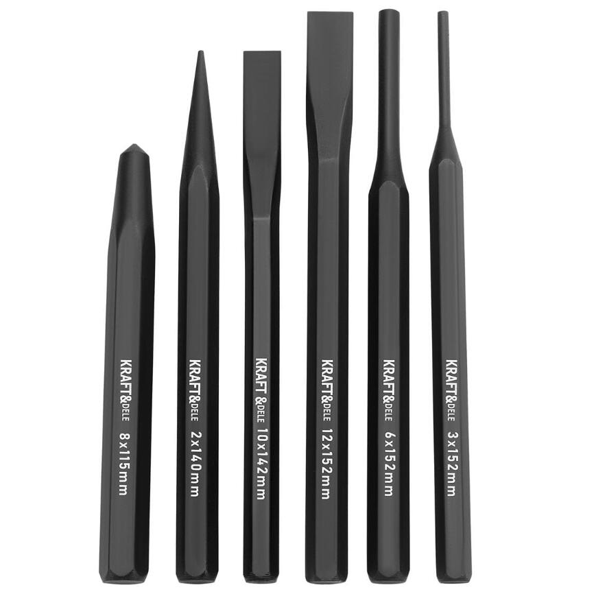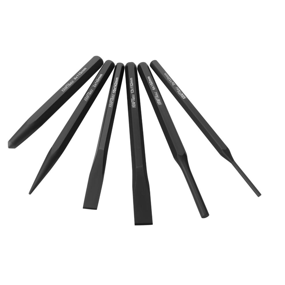 Set de 6 piese: perforator central, perforatoare cu ghidaj și dălți.