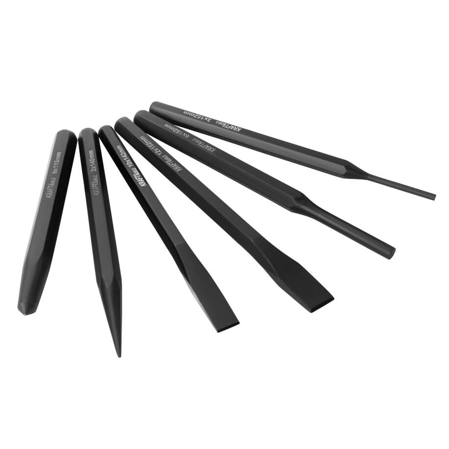 Setul de 6 piese permite perforarea, tăierea și perforarea precisă a diverselor materiale, facilitând lucrările de reparare și asamblare.