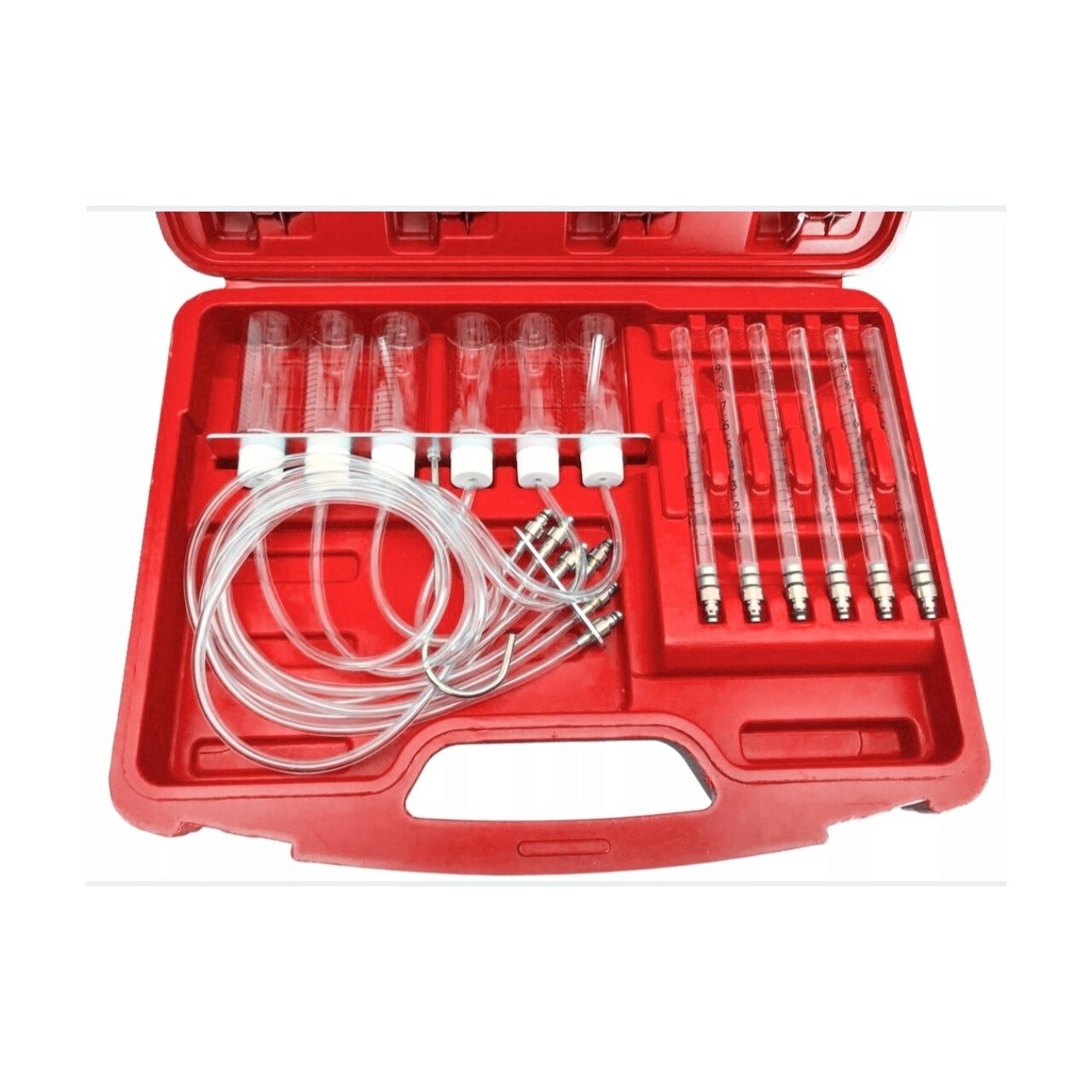 Aparatul este conceput pentru diagnosticarea injectoarelor la motoarele diesel cu maxim 6 cilindri, echipate cu sistem de alimentare cu combustibil Common Rail. Permite o diagnoză ușoară și rapidă a injectoarelor pe baza măsurării cantității de combustibil evacuată la preaplinul injectorului. Datorită acestui lucru, puteți găsi cu ușurință orice deteriorare, murdărie sau scurgere a injectoarelor. Diagnosticarea constă în conectarea sondelor sau a unei benzi de testare, cu ajutorul adaptoarelor adecvate la conductele de preaplin al injectorului și în compararea cantității de combustibil furnizată de injectoarele individuale. Furnizarea unei doze mai mari sau mai mici de combustibil prin orice injector înseamnă defectul acestuia. Poate fi folosit la pornirea motorului sau in timpul functionarii acestuia pe 6 cilindri simultan.