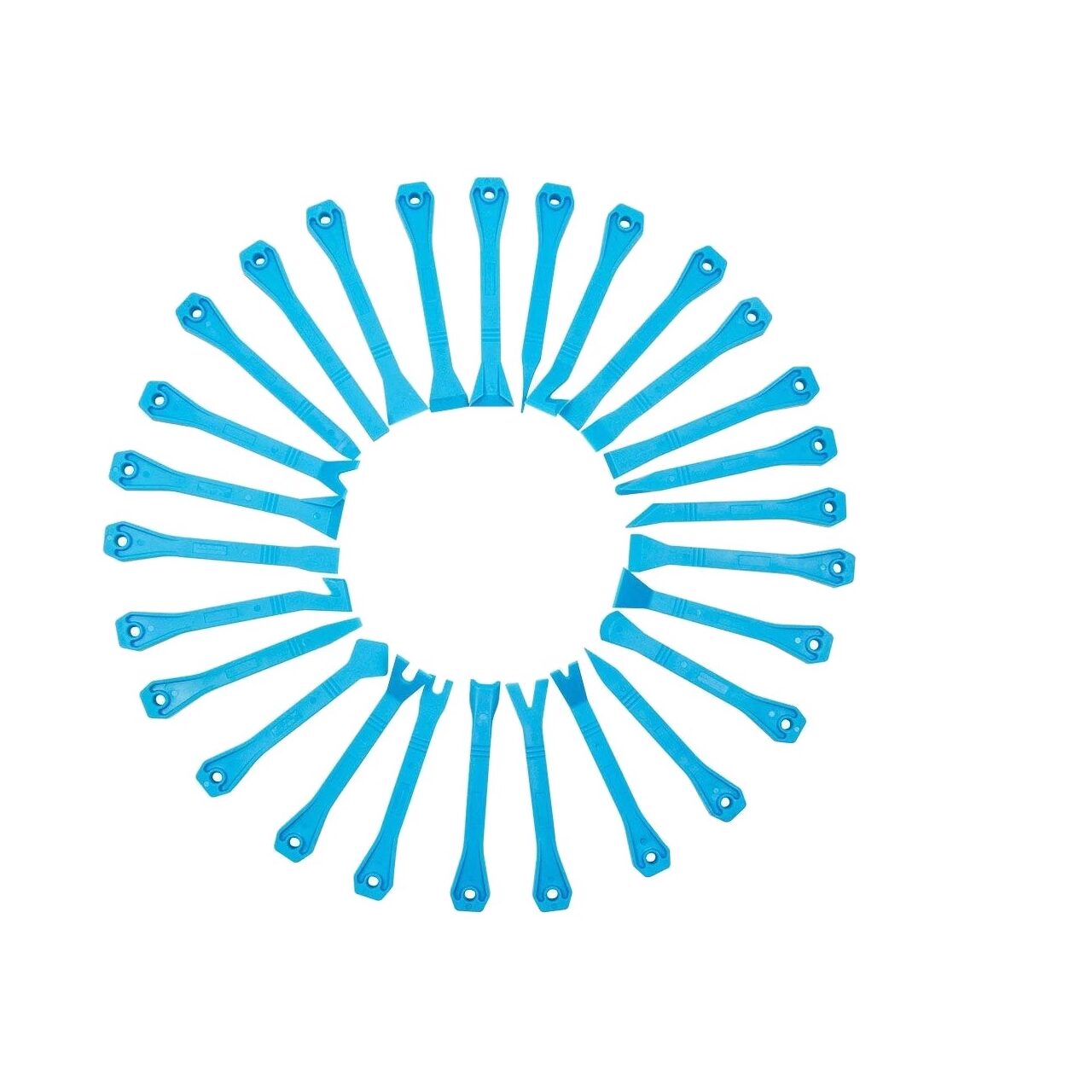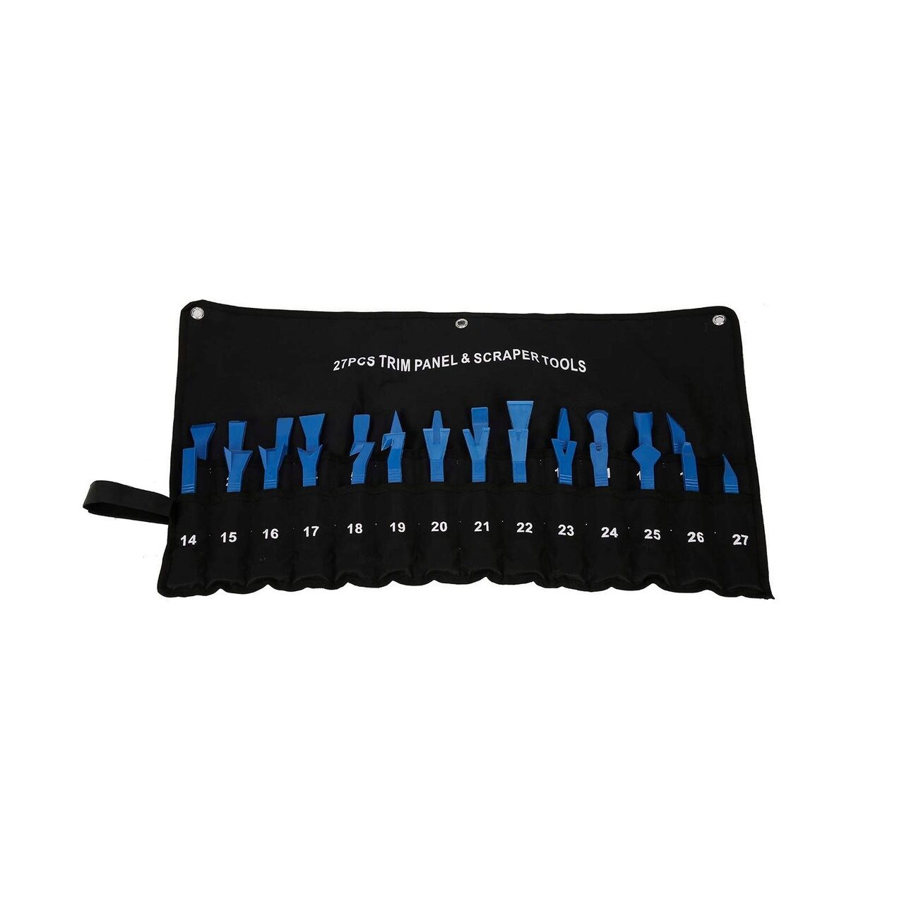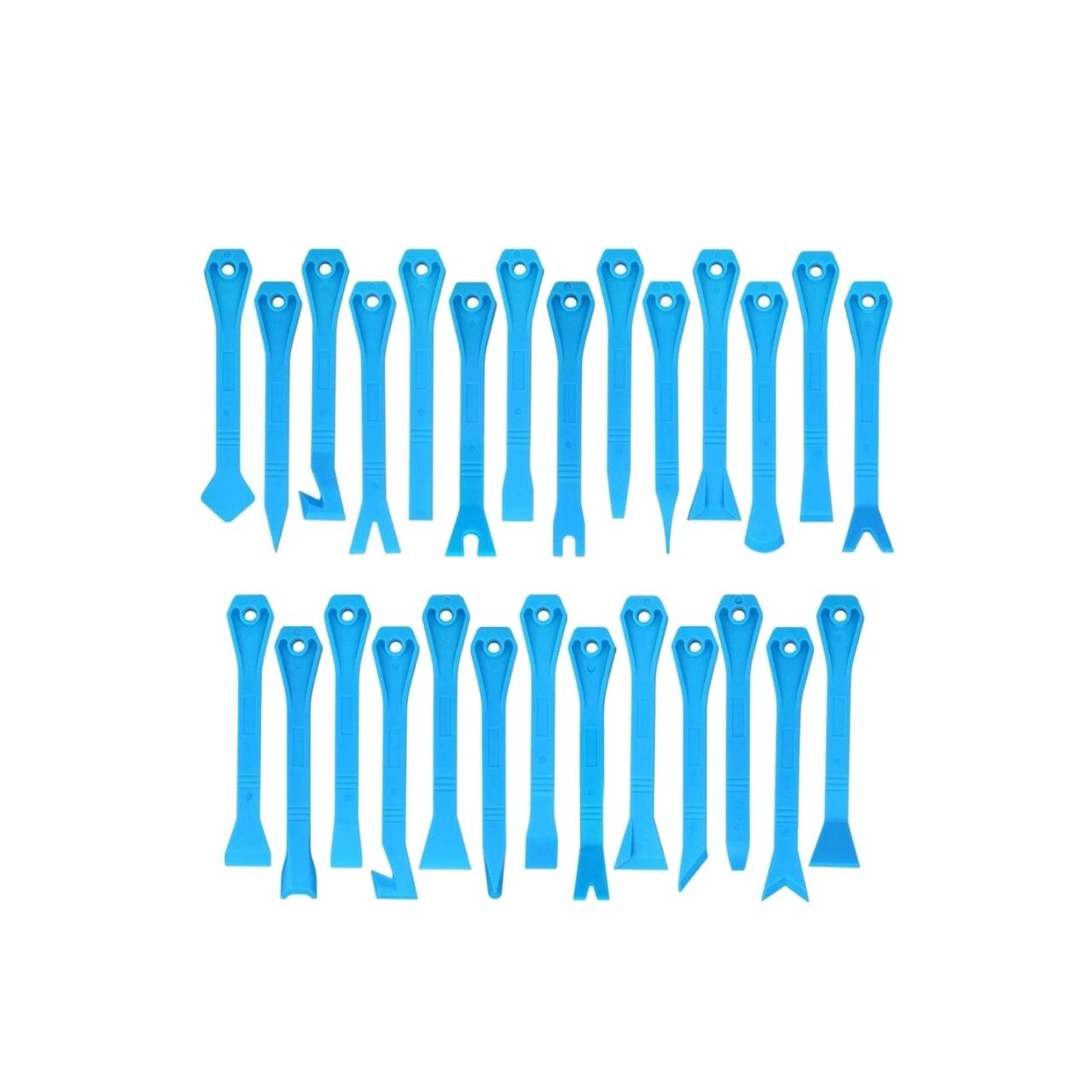 Setul specializat include 27 de extractoare , datorită cărora puteți demonta cu ușurință de exemplu. cleme de plastic, garnituri, panouri, bord și chiar faruri sau bare de protecție.