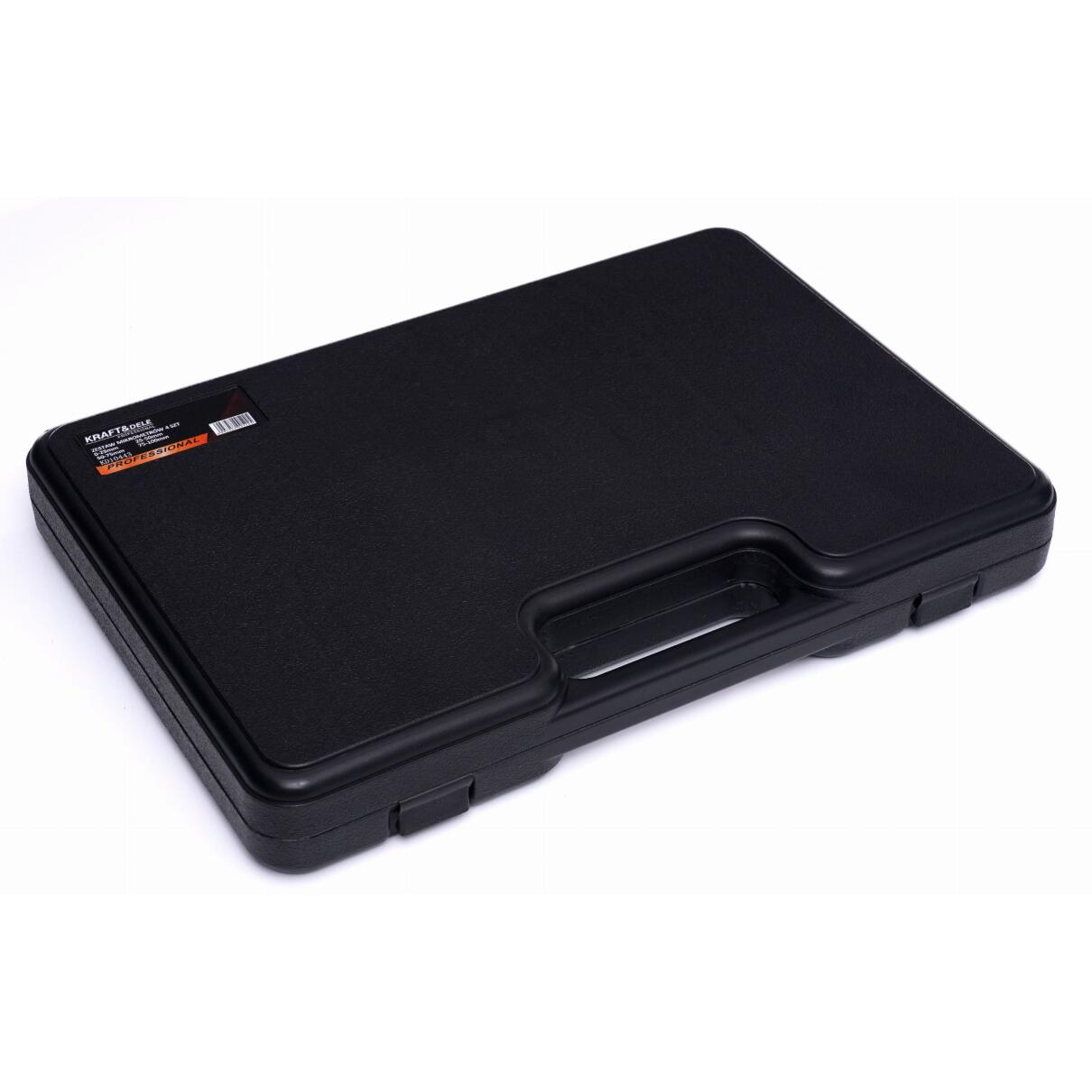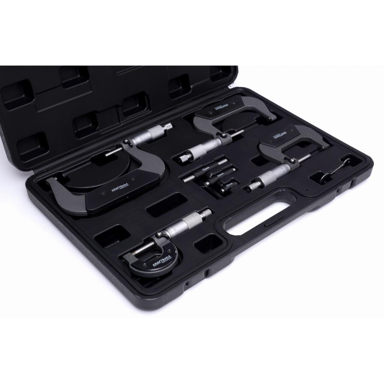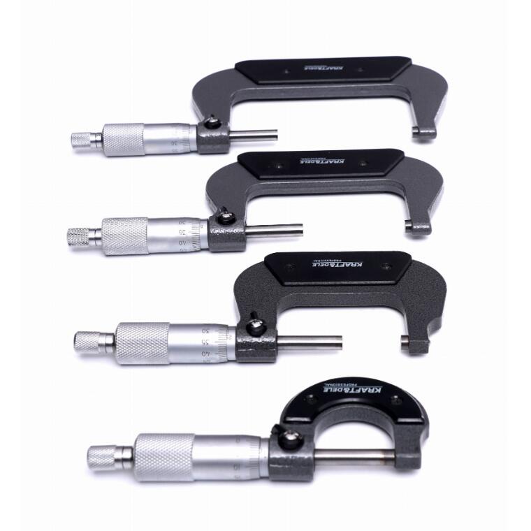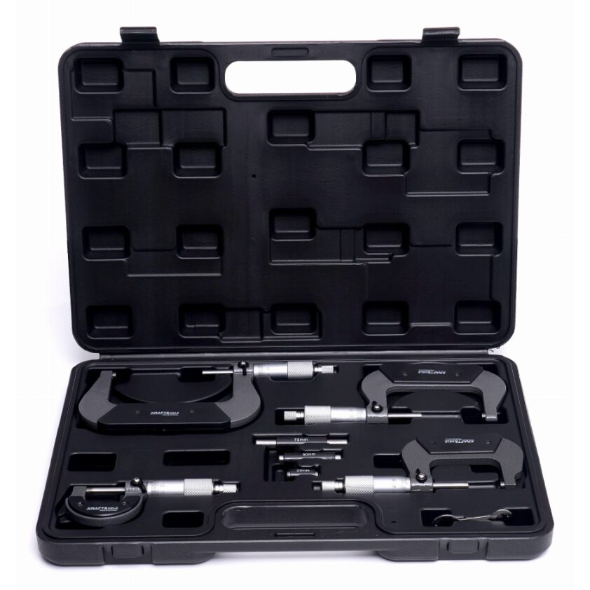 Setul include patru micrometre care acoperă întregul interval 0–100 mm, împreună cu calibre de control, permițând configurarea rapidă și precisă a dispozitivului. Datorită construcției robuste și elementelor de măsurare precise, micrometrele KRAFT&DELE garantează o funcționare fiabilă și de lungă durată.