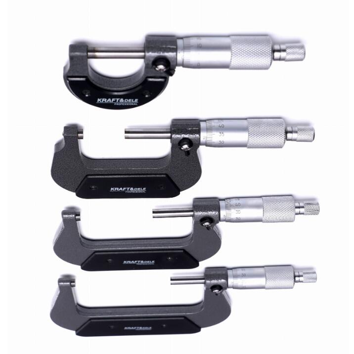 KRAFT&DELE KD10443 este un set profesional de micrometre de măsurare concepute pentru măsurarea precisă a dimensiunilor geometrice ale obiectelor fabricate din materiale dure, cum ar fi oțelul. Aceste micrometre oferă o precizie de măsurare de până la 0,01 mm, ceea ce le face un instrument indispensabil în ateliere, laboratoare și pentru lucrări tehnice care necesită precizie.