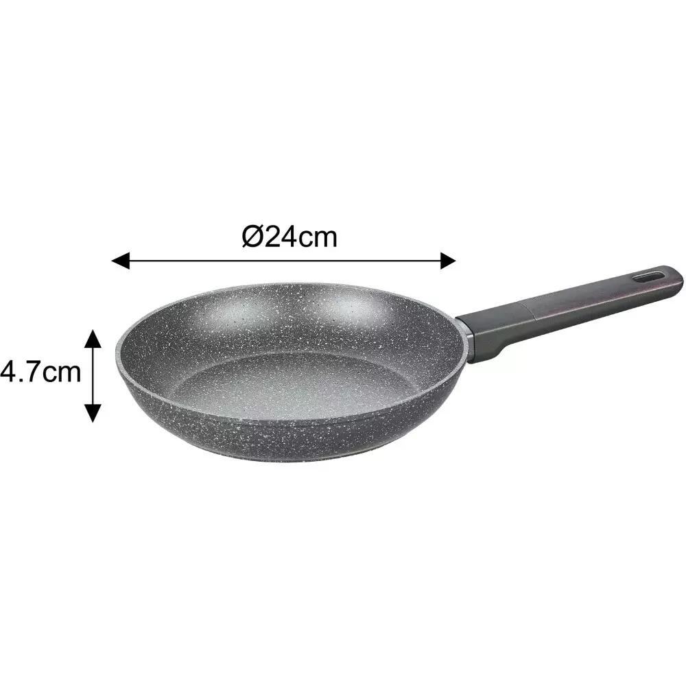 - Învelișul antiaderent marmorat, îmbogățit cu granite fine, permite prăjirea cu utilizarea minimă de grăsime, garantând în același timp rezistența la zgârieturi și deteriorare.