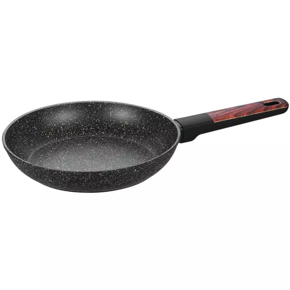 - Învelișul antiaderent marmorat îmbogățit cu granite fine permite prăjirea cu grăsime minimă, oferind în același timp rezistență la zgârieturi și deteriorare.