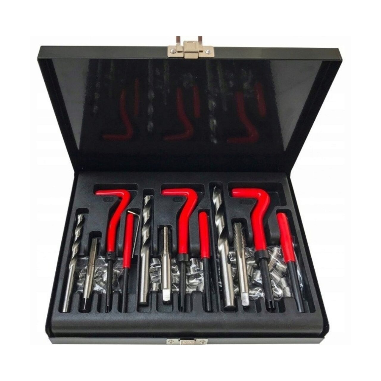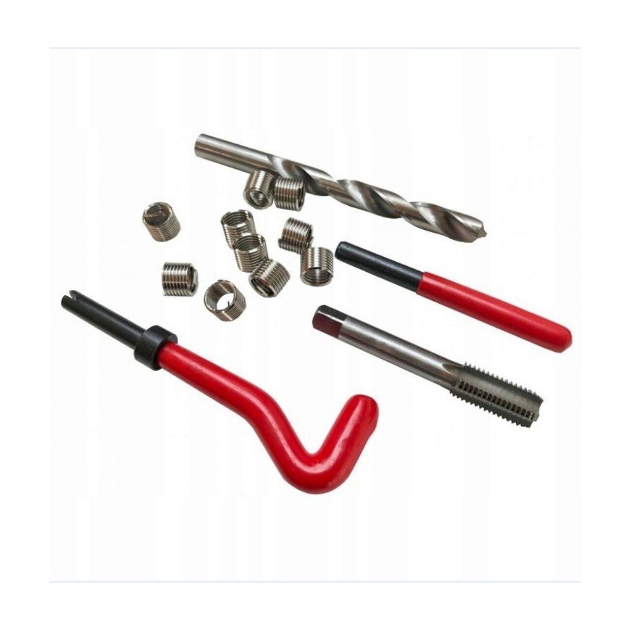 Un set de reparare a filetului de înaltă calitate, care vă permite să reparati filetele deteriorate cu o nouă inserție filetată. Sunt fabricate din oțel de calitate HSS.