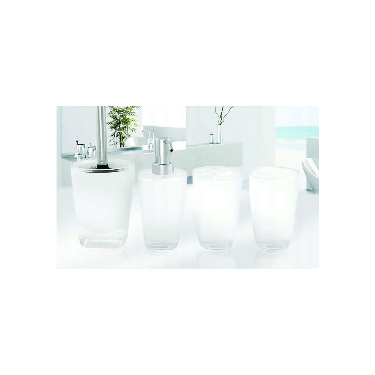 Fabricat din plastic de înaltă calitate în alb de bun gust. Designul atractiv se potrivește perfect atât în băile moderne, cât și în cele clasice . Setul include o perie neagră cu diametrul de 7 cm cu peri înlocuibili și un mâner.