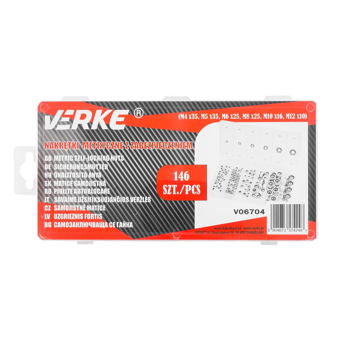 Un set de 146 de piulițe metrice cu mecanisme de blocare.