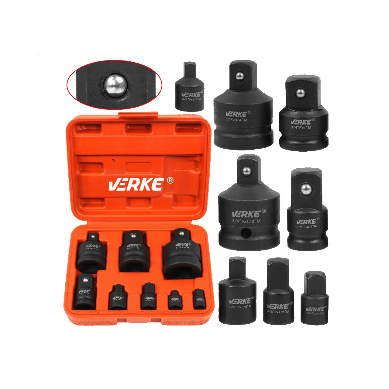 Dimensiuni reductoare: 1/4"-3/8", 3/8-1/4", 3/8"-1/2", 1/2"-3/8", 1/2"-3/4 "3/4"-1/2", 3/4-1", 1-3/4"