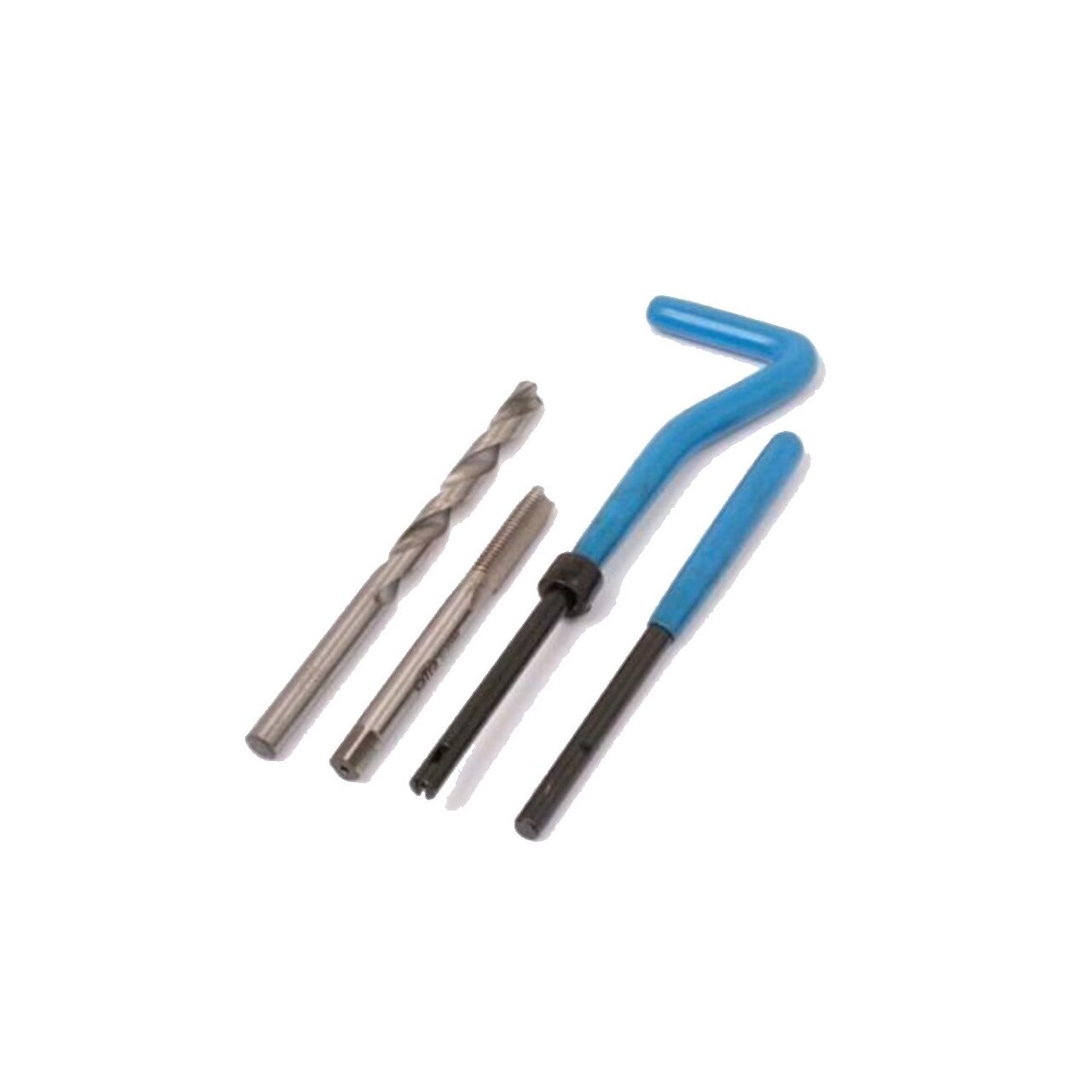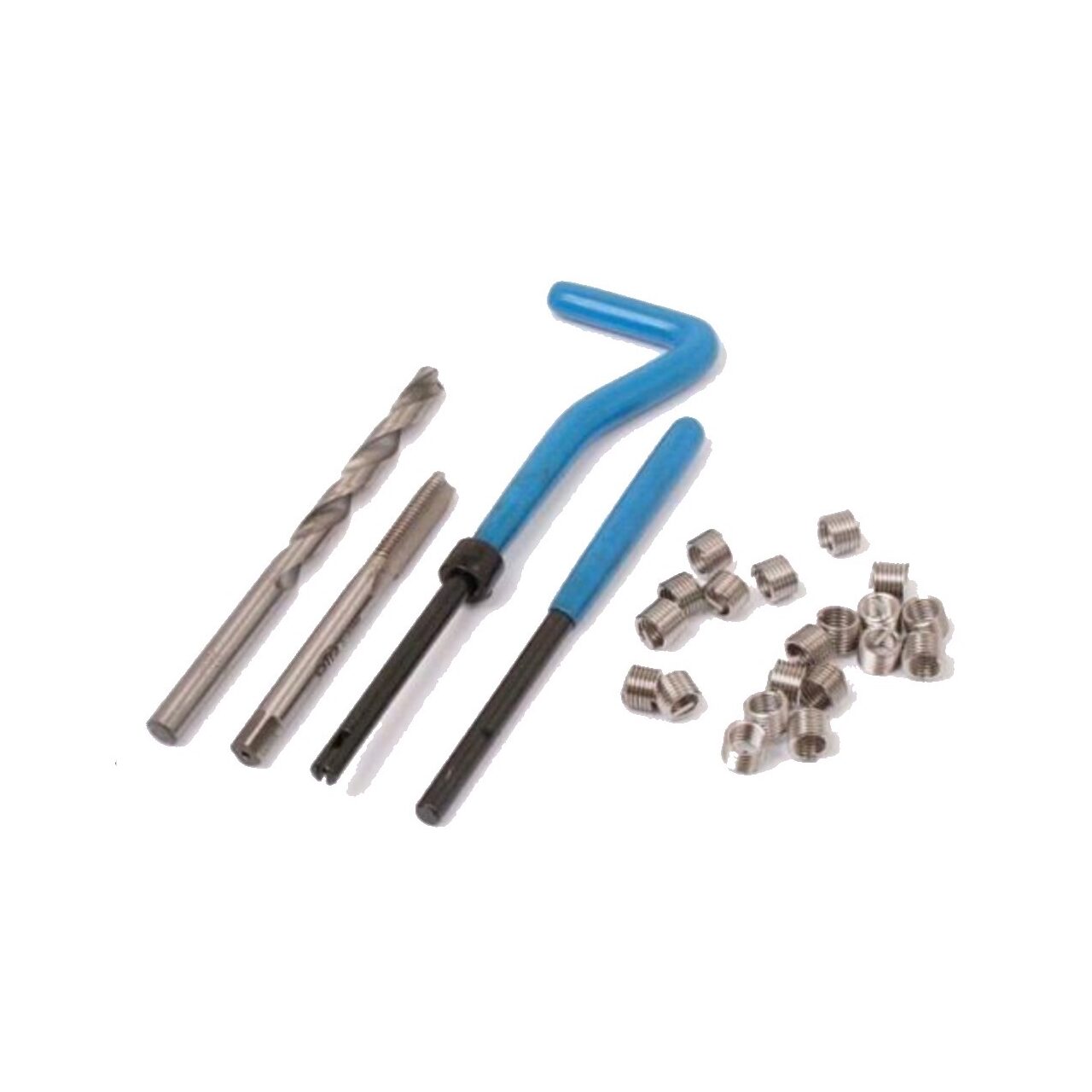 Kit reparatie filete deteriorate Componente din otel rapid HSS. Robinetele taie firul în care este apoi introdus arcul.Inserția este instalată cu un buton înclinat.Setul include și un pumn pentru a rupe vârful proeminent al insertului.