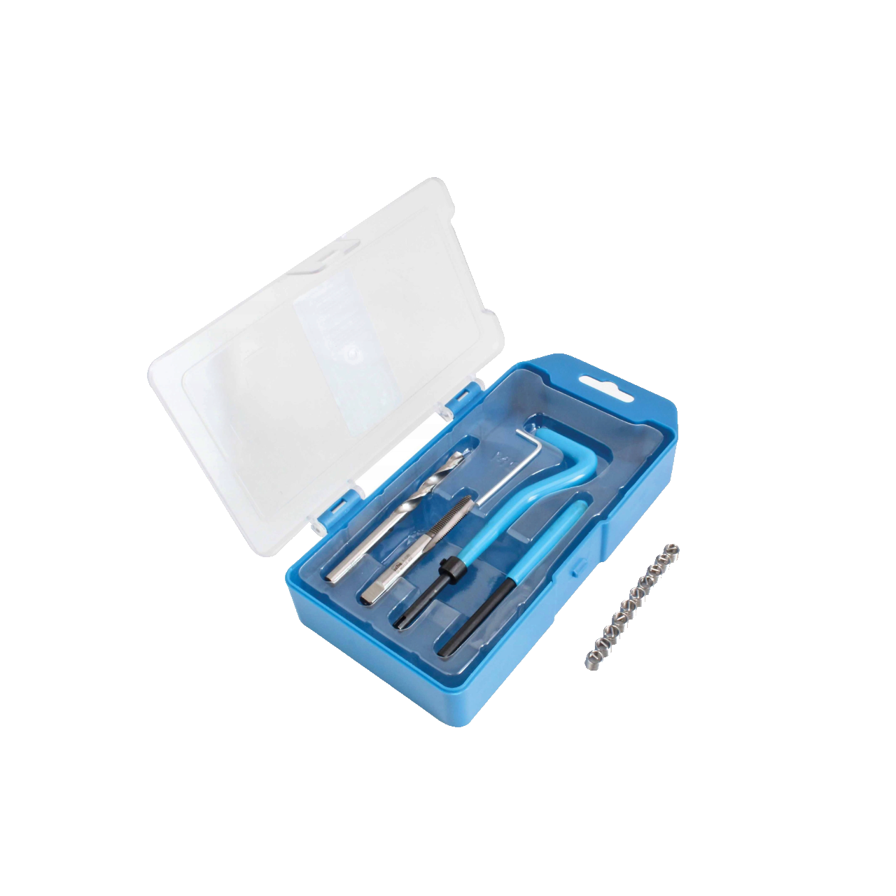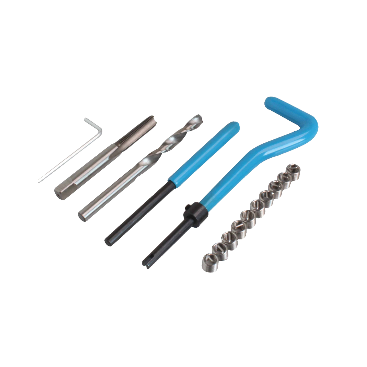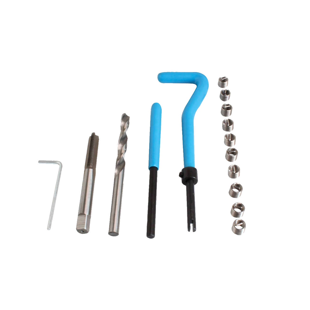 Kit de reparații pentru filete M8X1.25 deteriorate. Elemente din oțel de mare viteză HSS. Robinetele taie firul în care este apoi introdus arcul.
