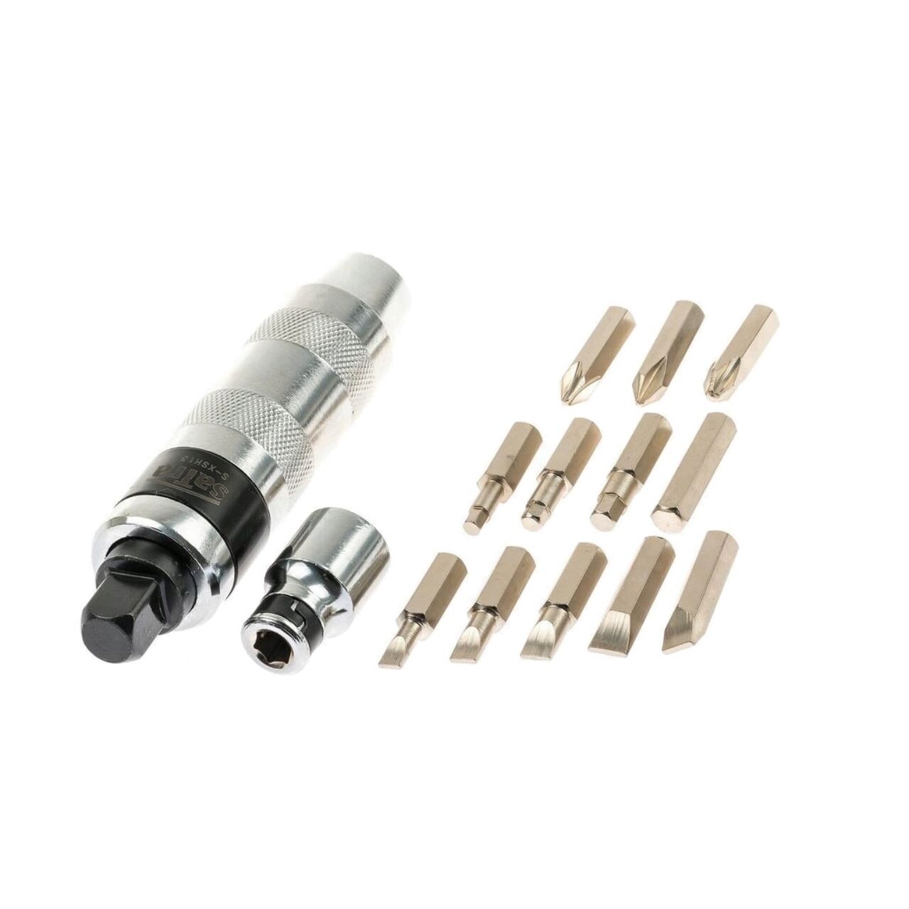 Set surubelnita de impact si biti, pentru suruburi gripate, 1/2", 13 piese, cutie metalica, Satra