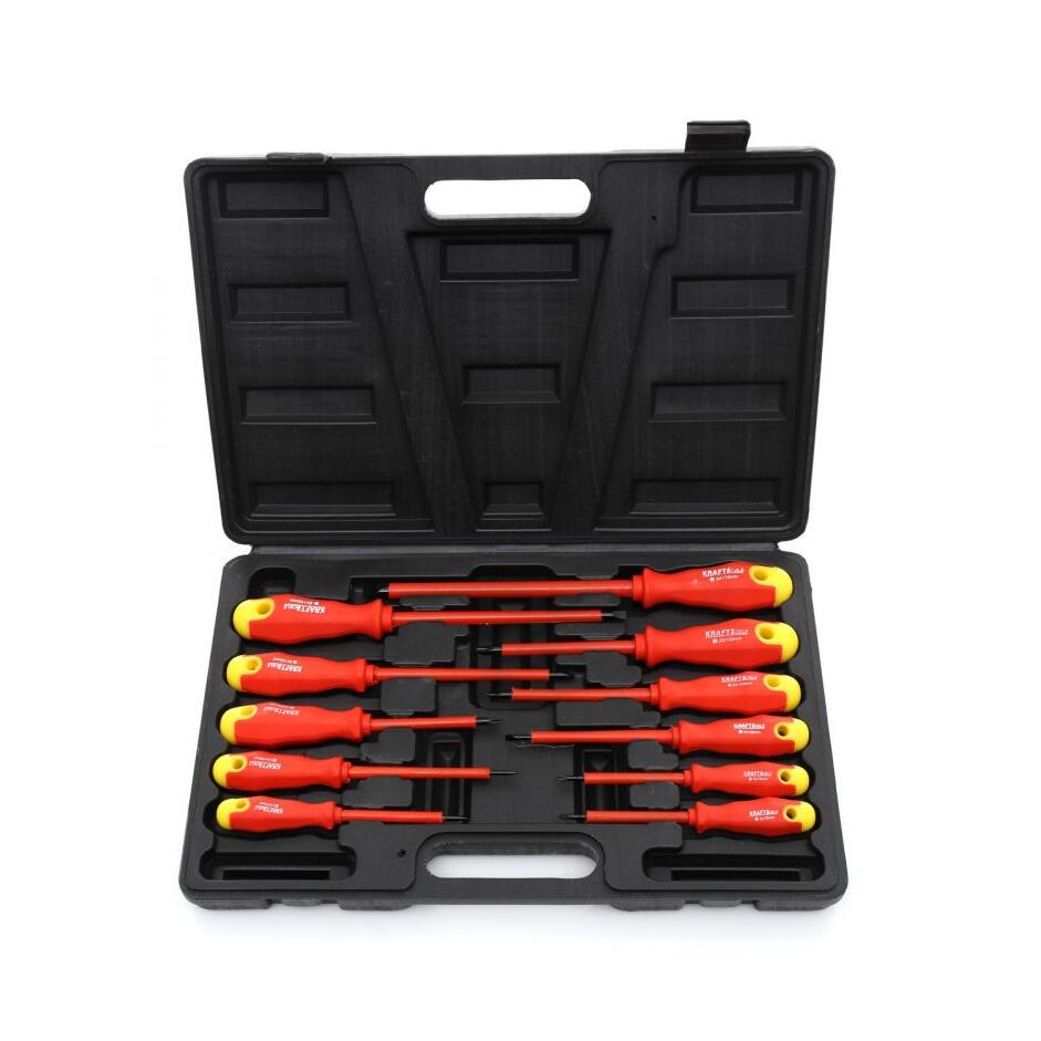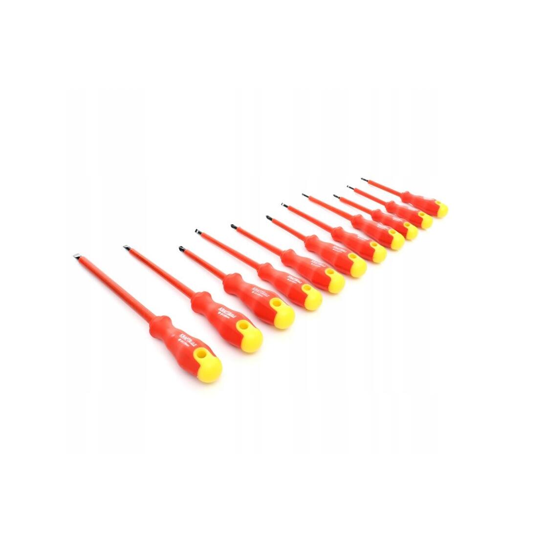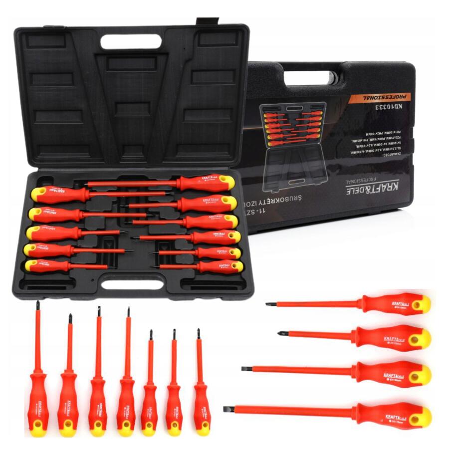 Este un set complet de șurubelnițe izolate concepute pentru lucrări sigure la instalațiile electrice și strângerea precisă a componentelor, atât în electrocasnice, cât și în cele profesionale.