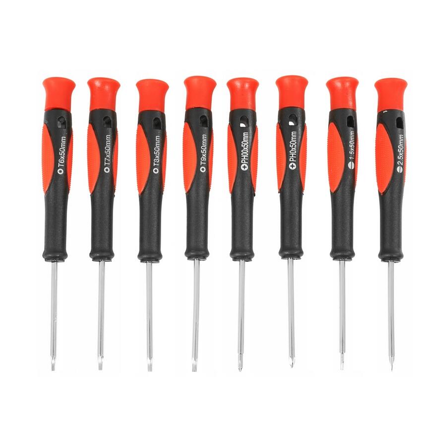 8 șurubelnițe de precizie: plate: 2,5x50/1,5x50 PH00x50/PH0x50 Torx tip T6x50/T7x50/T8x50/T9x50 mm
