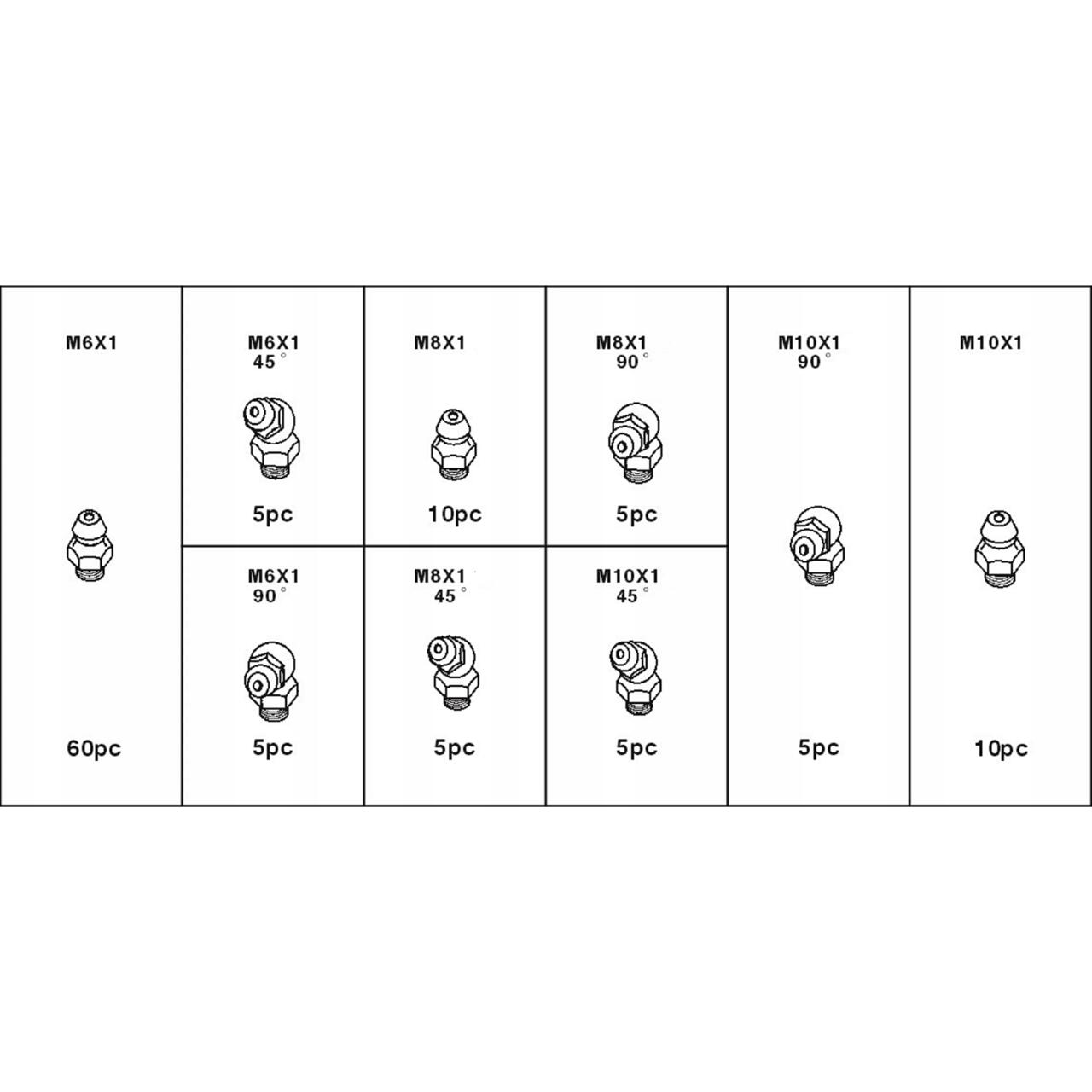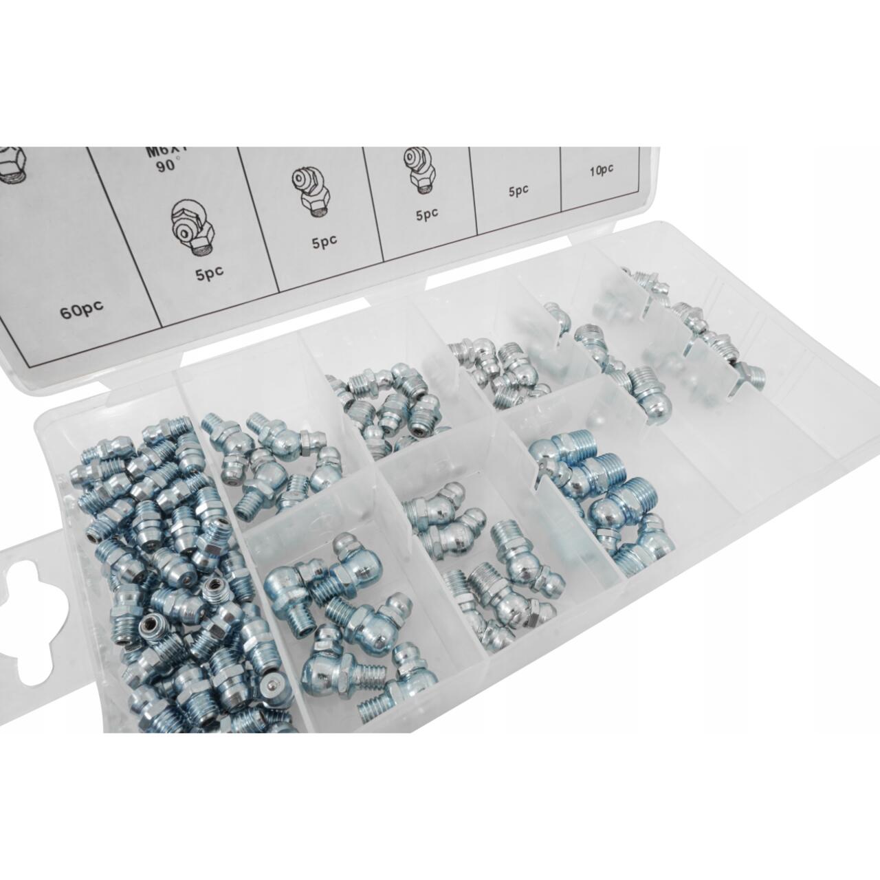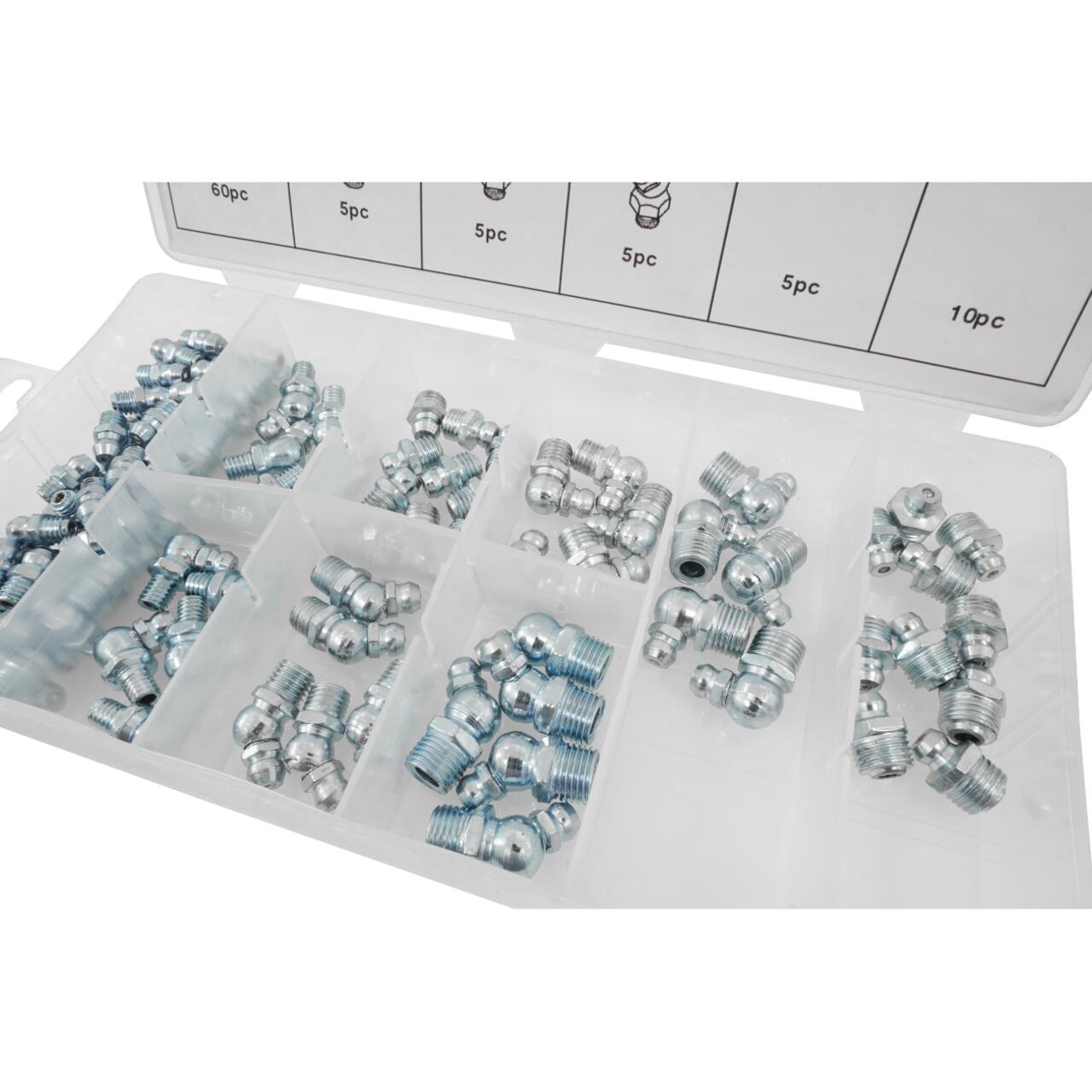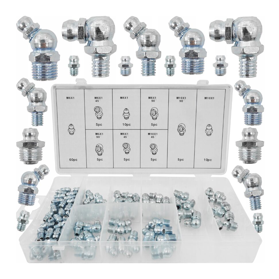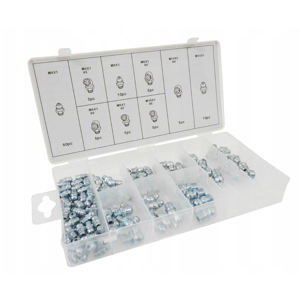 Un set care conține 110 nipluri de ungere. Filete metrice. Un amestec de 9 dimensiuni, ambalate într-un organizator convenabil. Esențiale pentru auto, agricole și industriale.