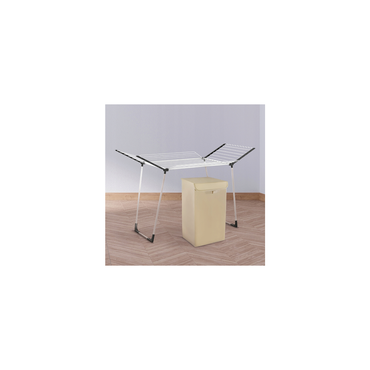 Uscător universal conceput pentru toate tipurile de haine . Datorită celor 4 aripi de rufe pliabile , va ține mai multă rufe decât un uscător standard. Uscător stabil și durabil din oțel. După pliere, uscătorul ocupă foarte puțin spațiu datorită sistemului de picioare pliabile , păstrând în același timp o zonă mare de uscare.