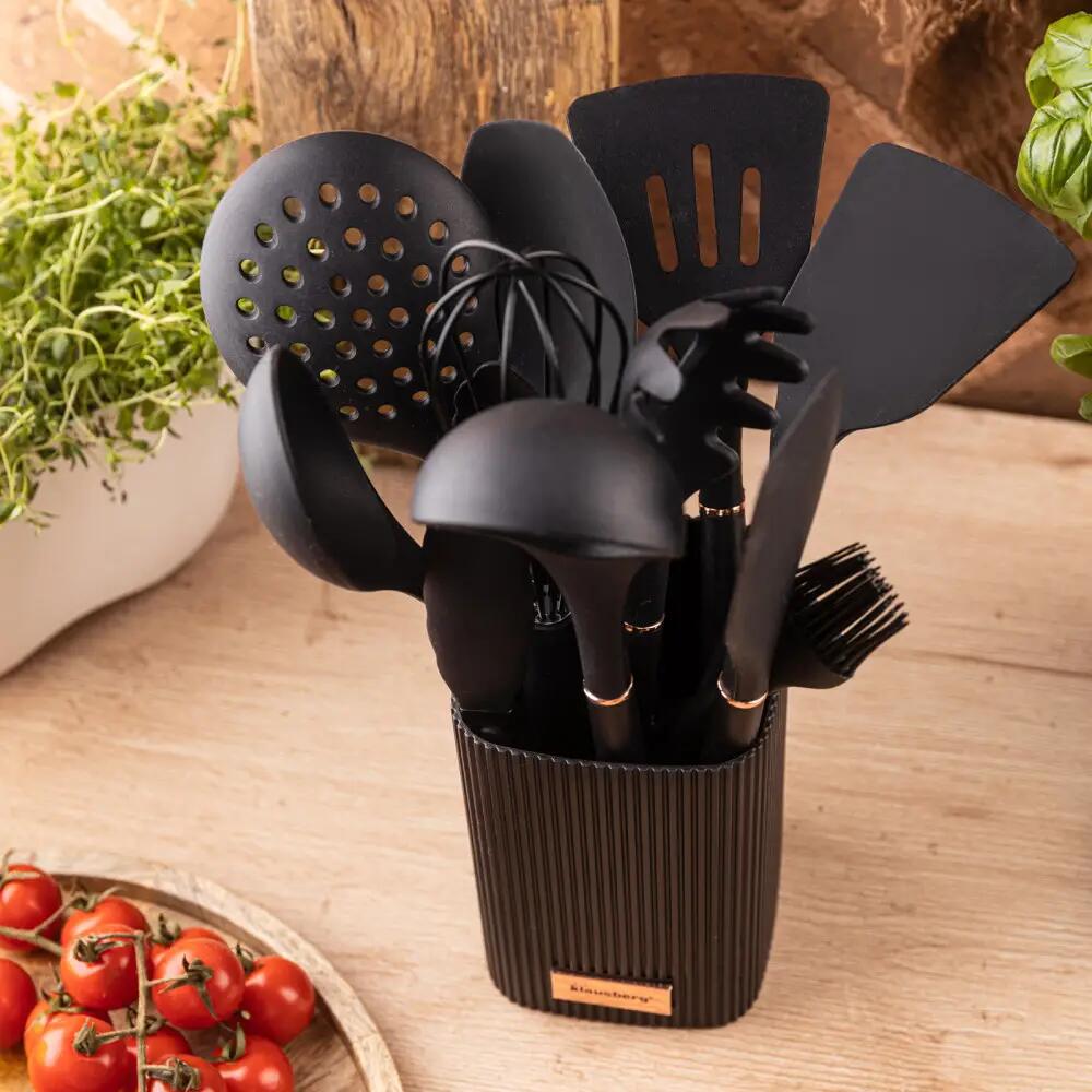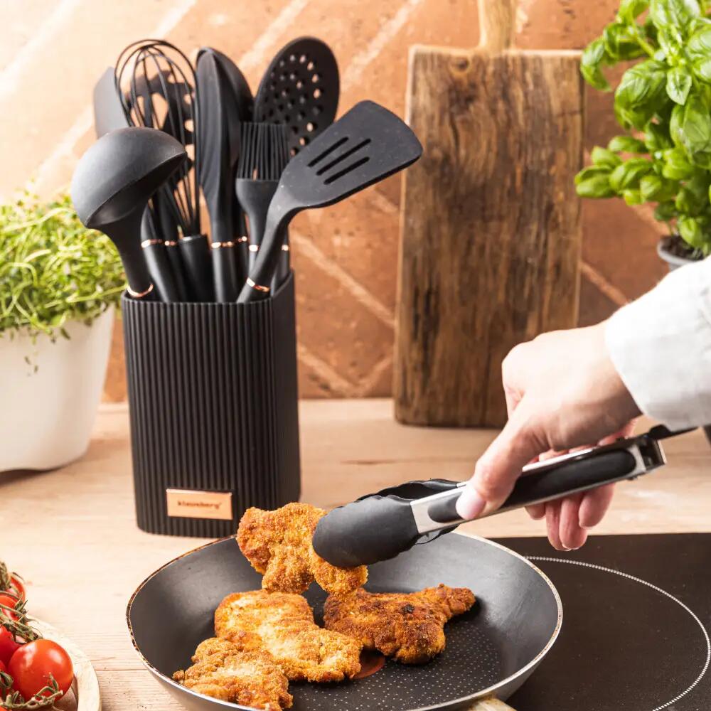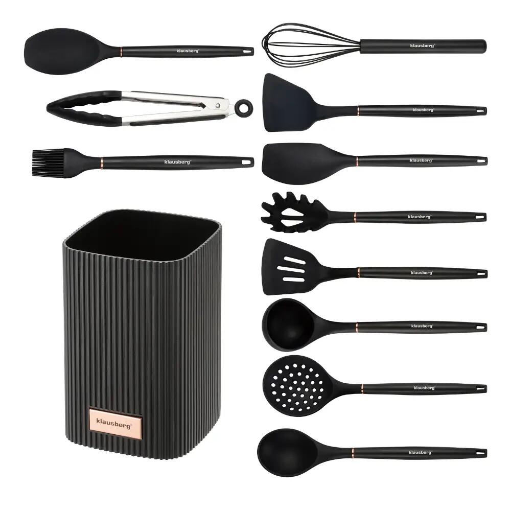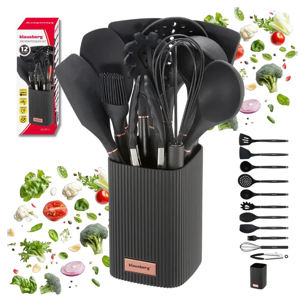 Set ustensile de bucatarie, 12 piese din silicon negru, Klausberg