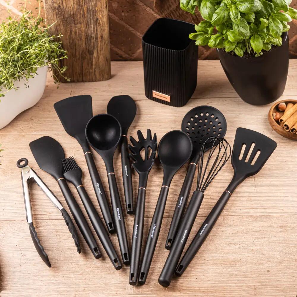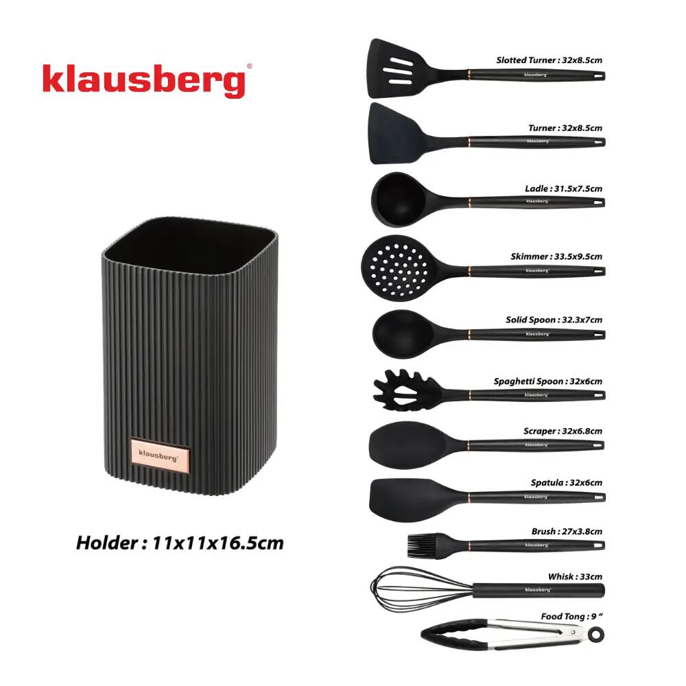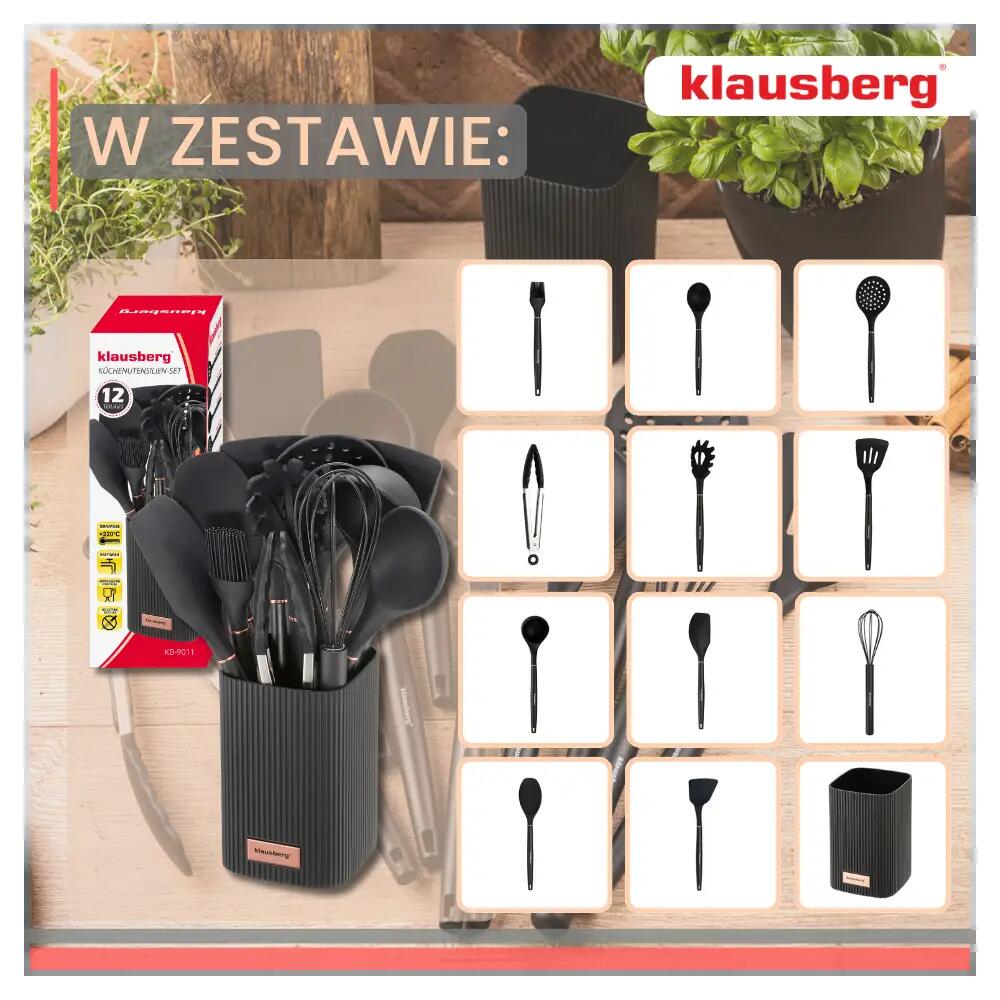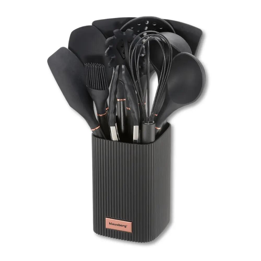 Set ustensile de bucatarie, 12 piese din silicon negru, Klausberg