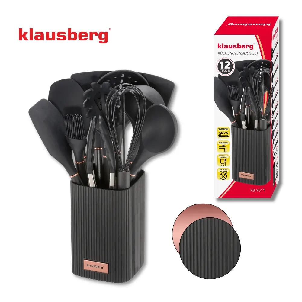 Klausberg KB-9011 este un set complet de 12 ustensile de bucătărie, concepute pentru gătitul zilnic acasă și pentru utilizarea intensă în catering. Combinația de silicon alimentar și oțel inoxidabil asigură durabilitate, siguranță pentru ustensile și confort. Întregul set este completat de un suport practic, care ajută la menținerea ordinii pe blatul de bucătărie.