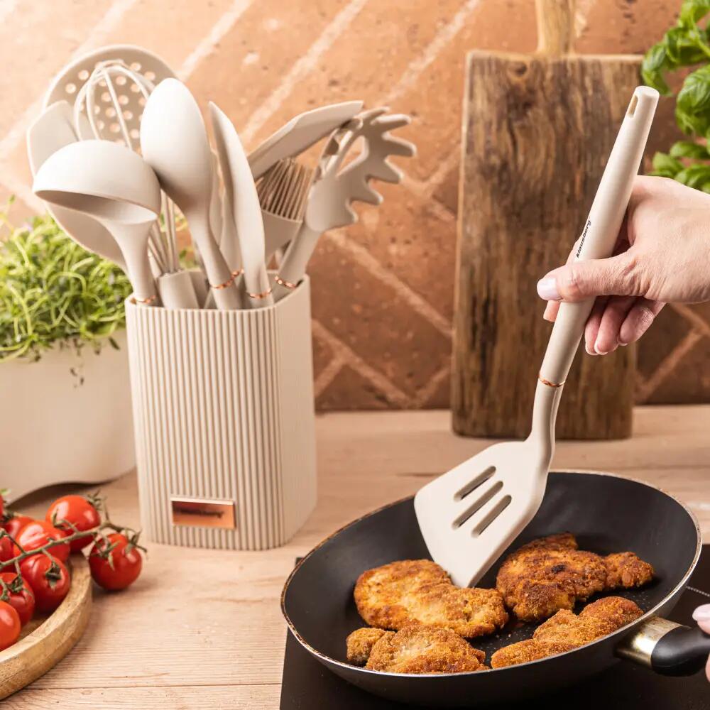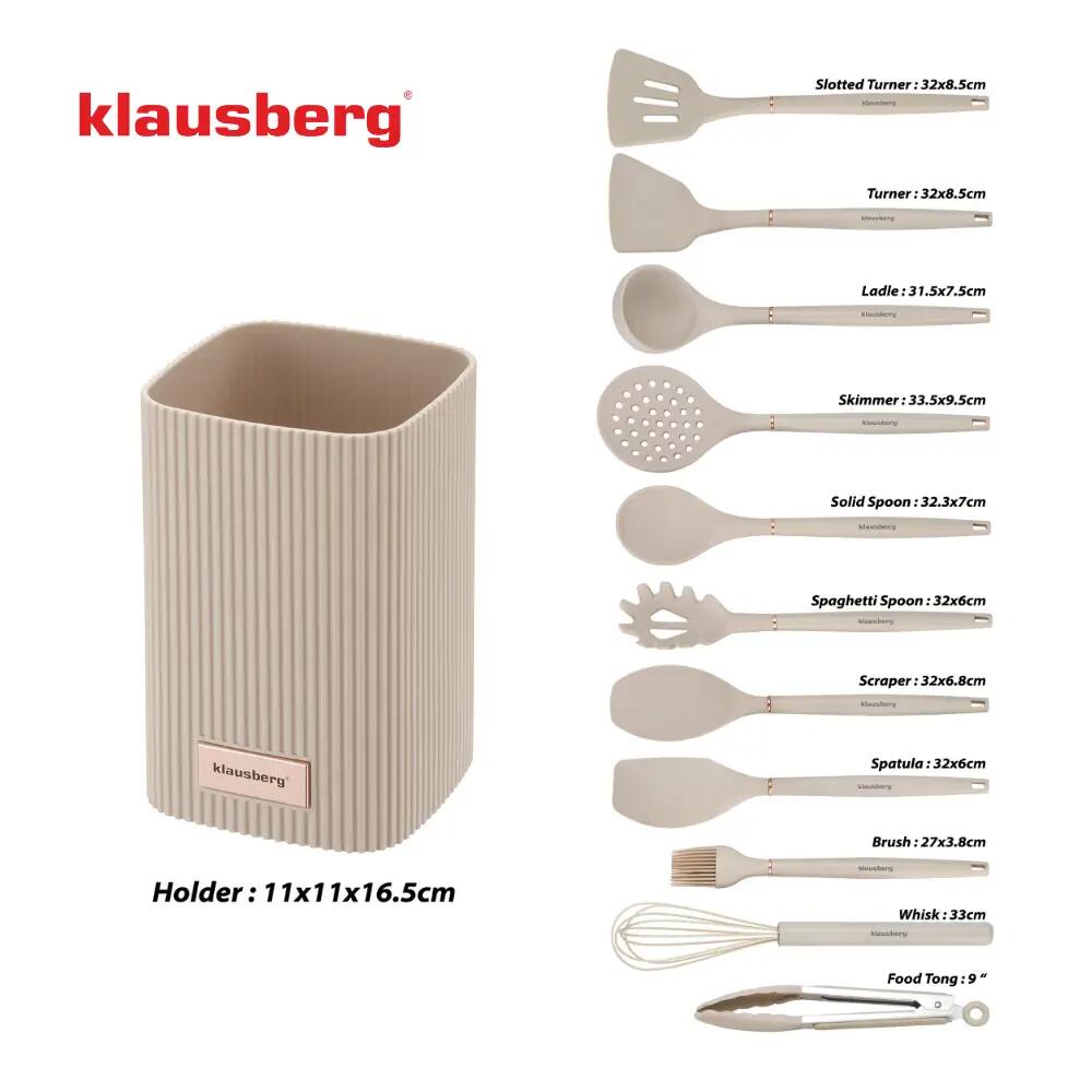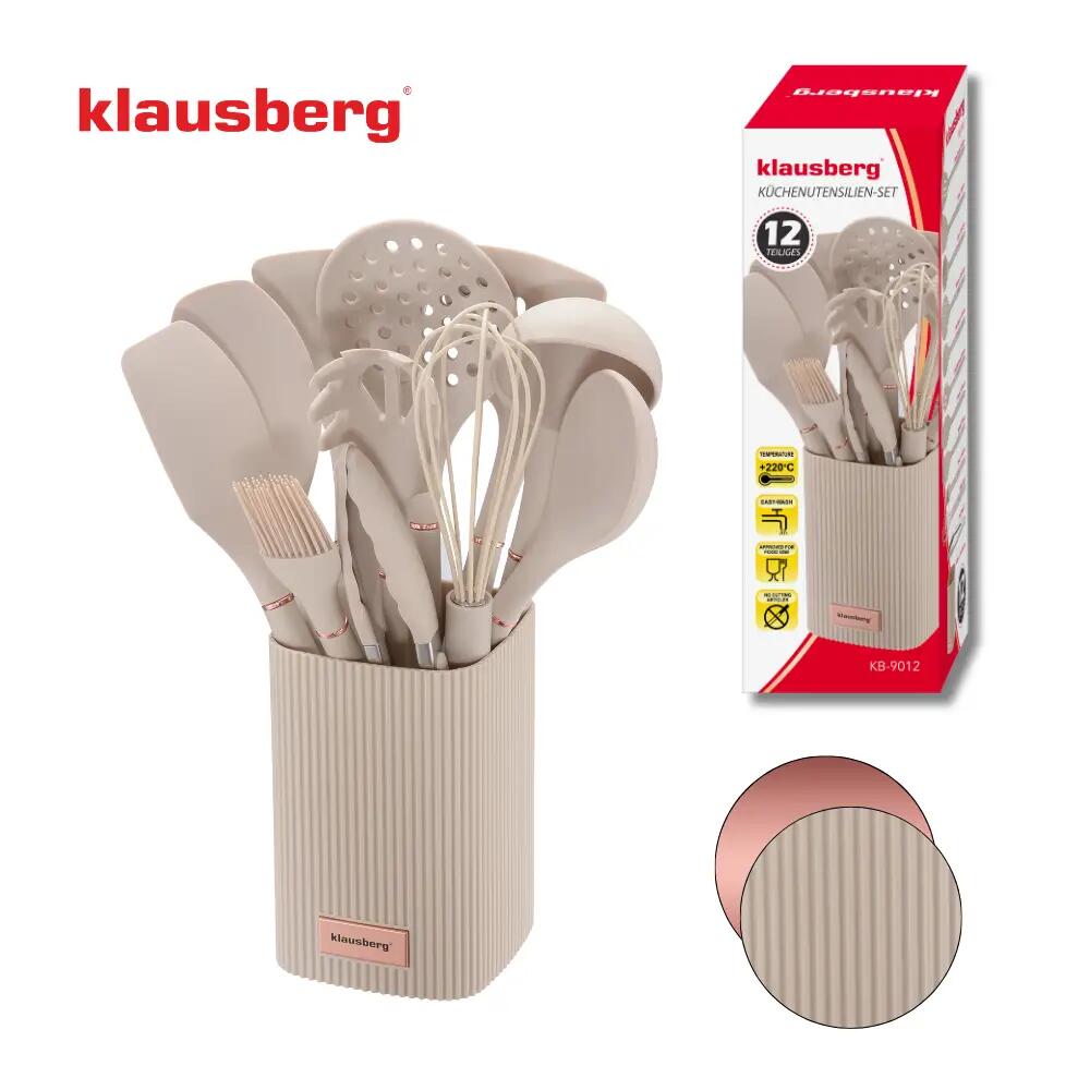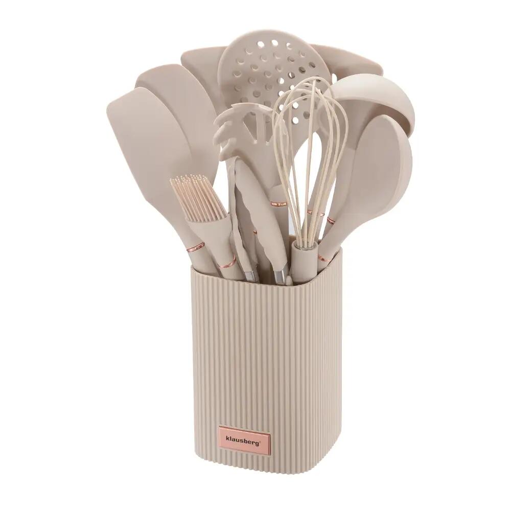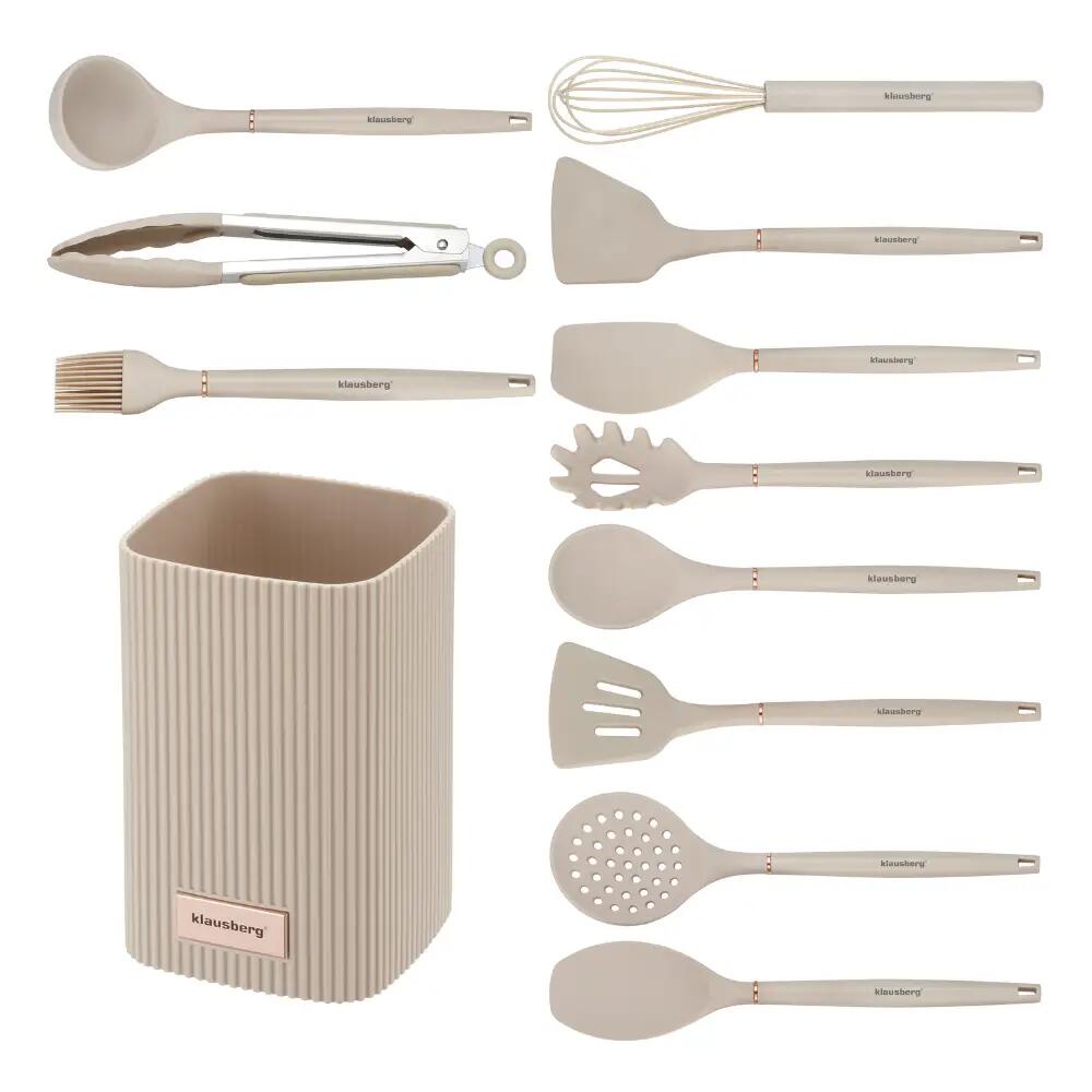 Set ustensile de bucatarie, 12 piese, silicon bej, Klausberg