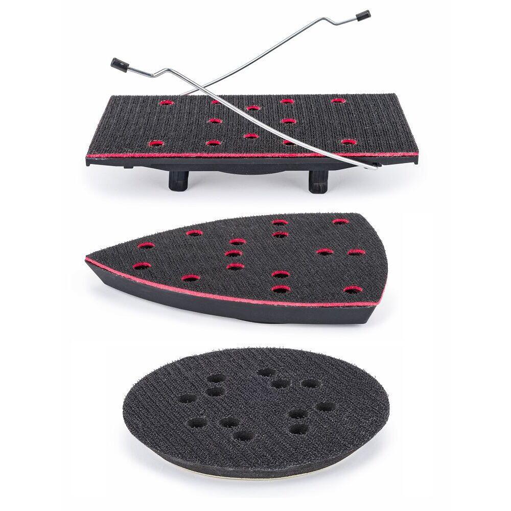 Pentru șlefuirea multifuncțională - excentrică și oscilantă, slefuitorul poate fi echipat cu 3 tampoane de șlefuire diferite ( Orbital - pentru șlefuirea suprafețelor plane; Triunghiular - pentru șlefuirea suprafețelor neuniforme; Dreptunghiular - pentru șlefuirea colțurilor și a marginilor).