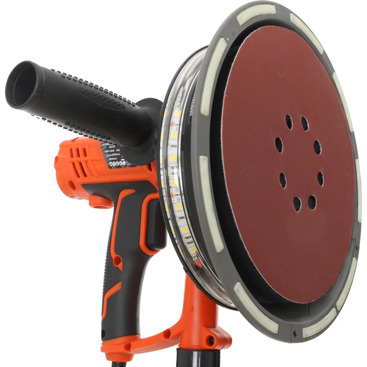 Slefuitor pentru pereti cu sac si sistem de aspirare iluminarea LED, putere 1500 W, disc 225 mm, Kraft