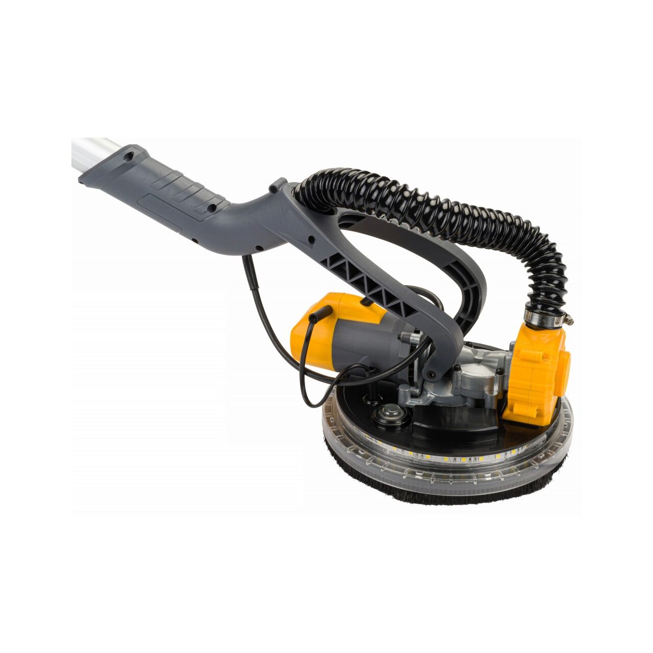 Girafa Powermat vine echipată cu un mâner telescopic, ajustabil pentru accesul în zone dificile, și un cap pivotant care permite manevrare ușoară și slefuire uniformă. Sistemul de aspirare integrat captează majoritatea particulelor de praf, menținând spațiul de lucru curat și sănătos. Cu lumină LED pentru iluminare optimă și o putere impresionantă de 1500W, acest slefuitor este alegerea profesioniștilor.