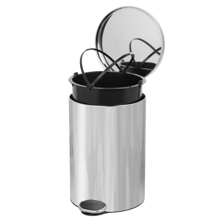 Coșul de gunoi este echipat cu o funcție de închidere silențioasă, asigurând o închidere lină și silențioasă a capacului, sporind confortul utilizatorului. Capacul izolează eficient conținutul, prevenind ieșirea mirosurilor neplăcute. Mecanismul cu pedală rezistă la până la 10.000 de cicluri de deschidere și închidere, asigurând fiabilitate pe termen lung. Caracteristicile suplimentare, cum ar fi mânerul de transport ascuns în balama și sistemul „click lock”, care permite blocarea capacului în poziția deschisă, sporesc confortul. În interior, există o găleată detașabilă din plastic care facilitează golirea și ascunde cu grijă marginile sacului de gunoi.
