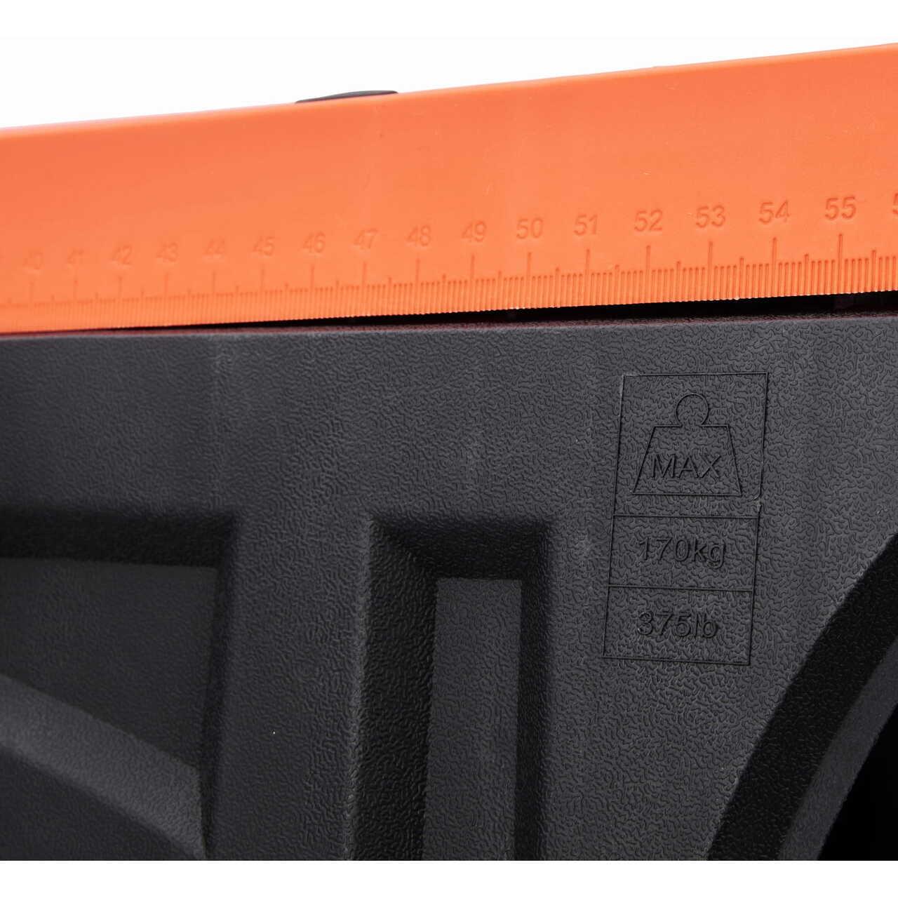 Suportul de atelier, format din 2 piese și cu tavă pentru scule, este o bancă de lucru practică, ideală pentru ateliere, renovări și lucrări de construcții.