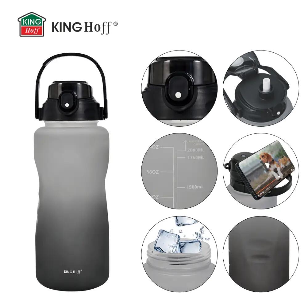 Sticla KingHoff KH-2009 este o sticlă încăpătoare și durabilă, concepută pentru utilizare intensivă. Capacitatea mare de 2 litri vă permite să rămâneți hidratat pe tot parcursul zilei - în timpul antrenamentelor, serviciului, studiului sau călătoriilor lungi - fără a fi nevoie de reumpleri frecvente.