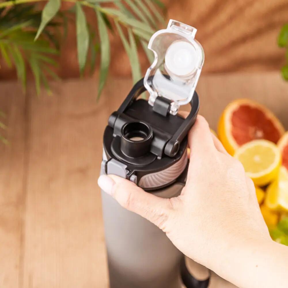 Datorită capacului etanș și sistemului convenabil de deschidere cu o singură mână, puteți utiliza sticla confortabil și fără să vă faceți griji că va curge, chiar și atunci când o transportați în rucsac sau în geantă.