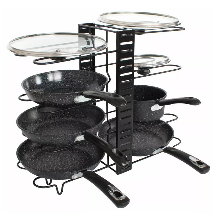 - Puteți regla înălțimea și poziția raftului pentru depozitarea oalelor, capacelor și tigăilor
