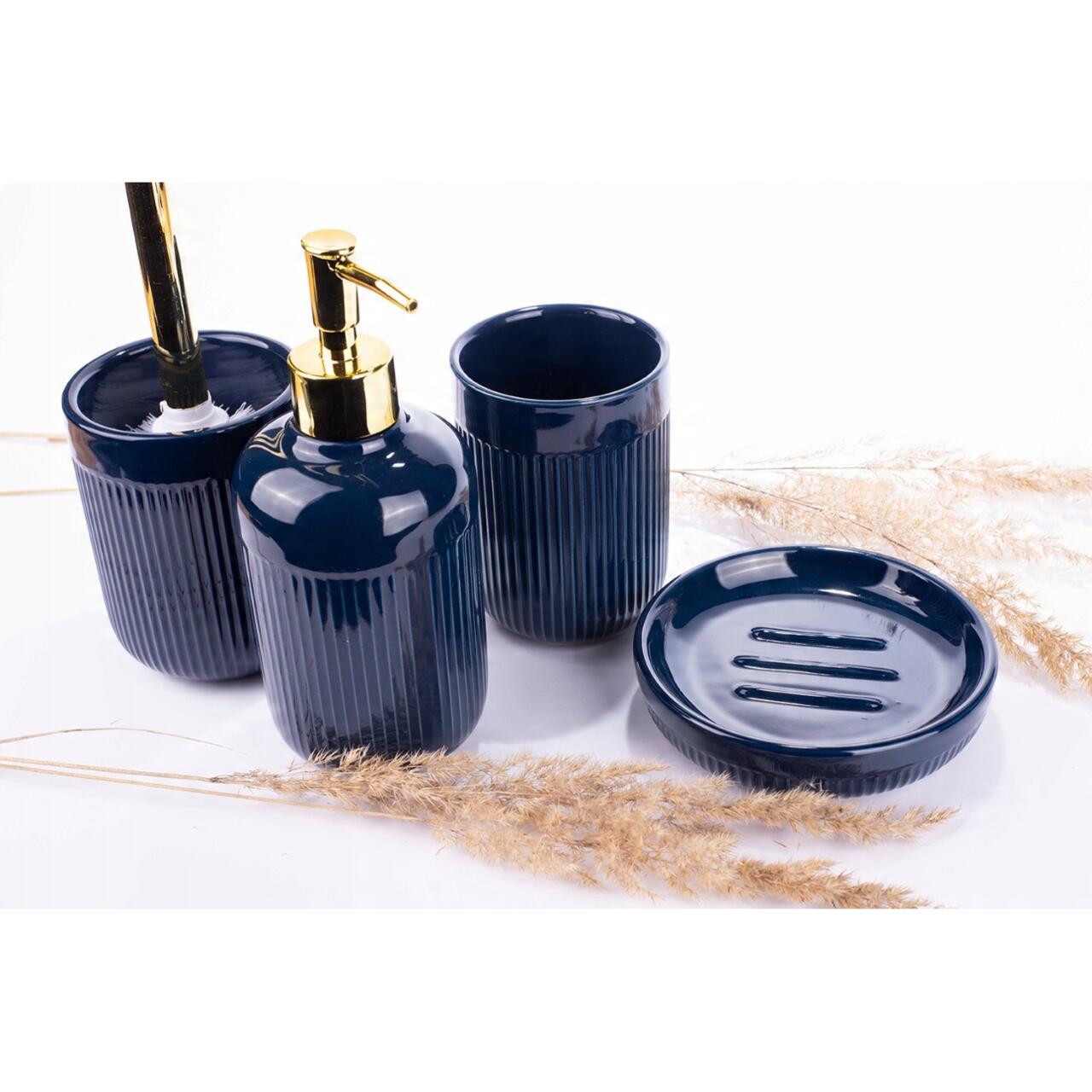 Suport pentru periute dinti, pensule, din ceramica, albastru marin, Sepio