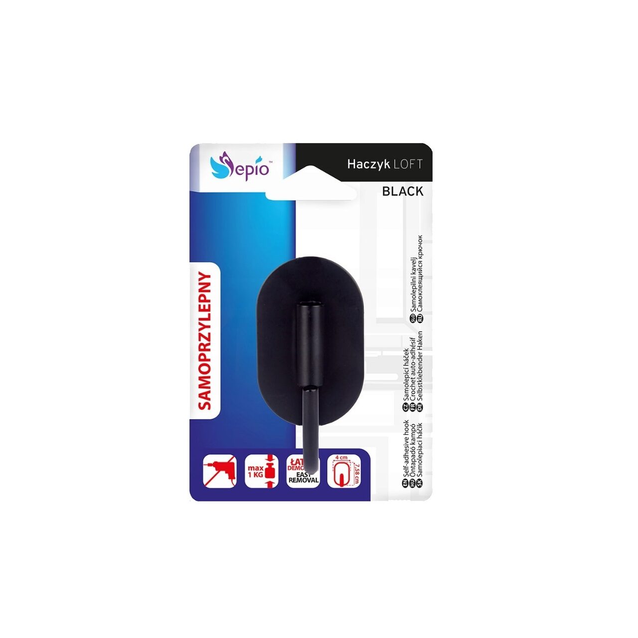 Suport pentru porosop tip cuier, metalic, negru mat, autoadeziv, Sepio