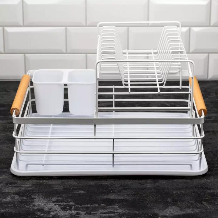 Uscătorul de vase are mânere confortabile de transport din lemn pe ambele părți, care pot fi folosite pentru a agăța o laveta de bucătărie.