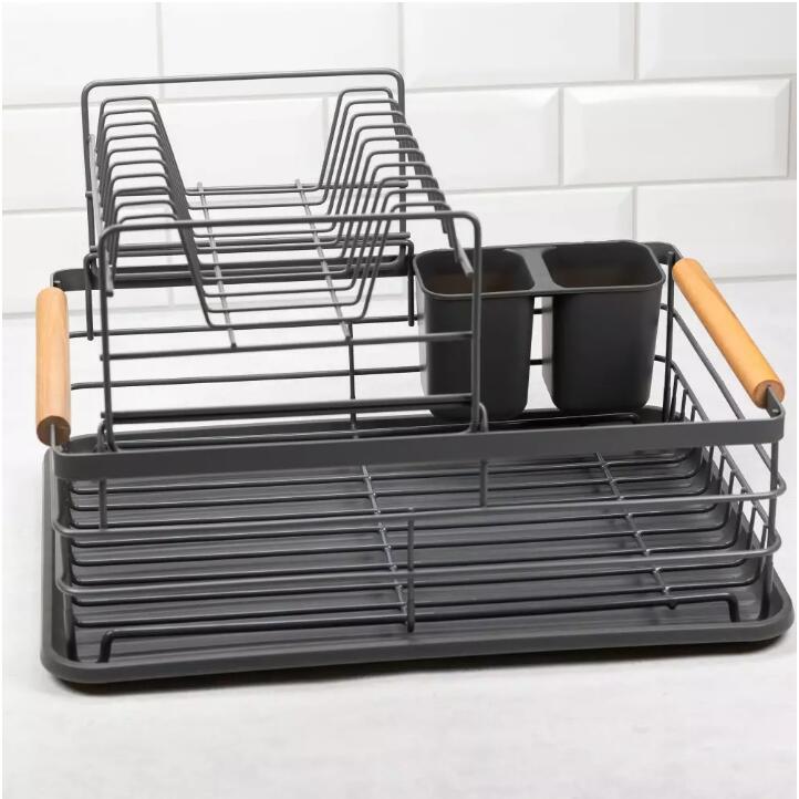 Uscătorul de vase are mânere confortabile de transport din lemn pe ambele părți, care pot fi folosite pentru a agăța o laveta de bucătărie.