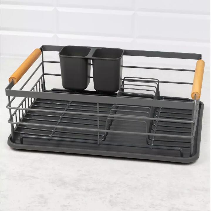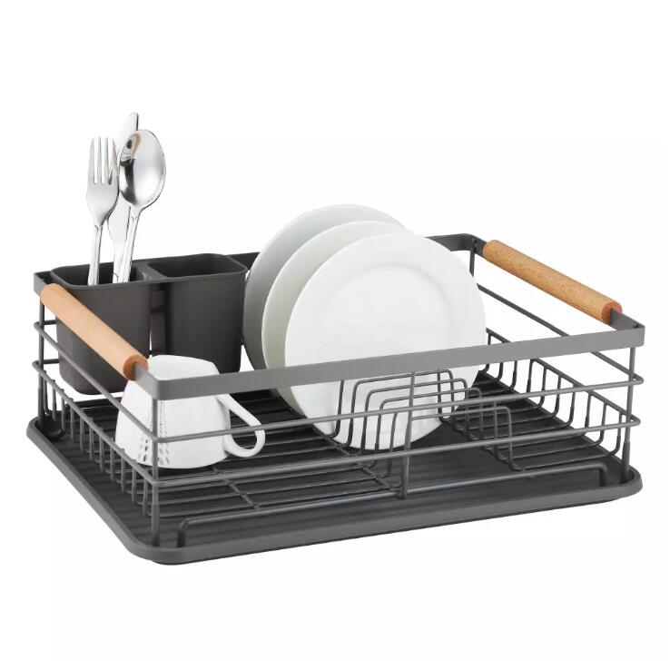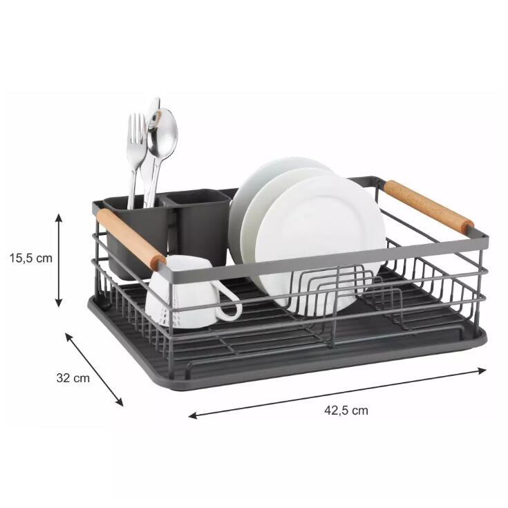 Suportul de vase are mânere de transport convenabile, din lemn, pe ambele părți, care pot fi folosite pentru a agăța o cârpă de bucătărie.